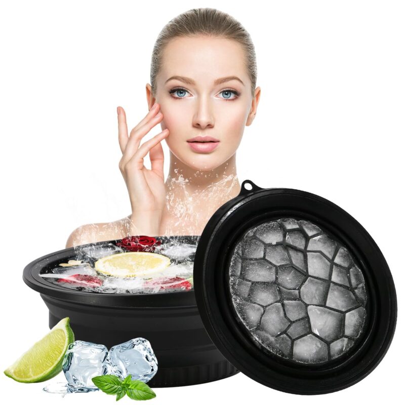 Face Ice Bowl Foldable Silicone Facial Ice Bath Kit Ice Pack Portable Facial Ice Therapy Bowl with Built-In Icetray for Cold Compress Skin Tightening, Puffiness Relief Glowing Skin Beauty Tool