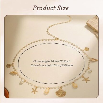 Waist Chain for Women with Shell & Starfish Charms – Sexy Belly Chain for Saree, Bikini, Crop Tops, Beachwear & Festival Outfits – Adjustable Body chain in Gold