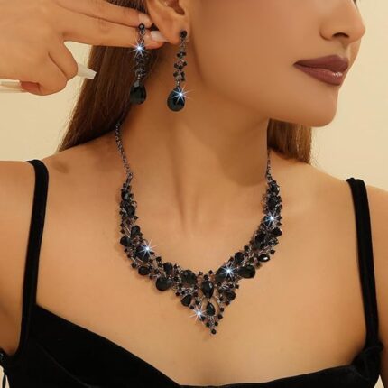 Shining Diva Fashion Latest Stylish Design Fancy Crystal Necklace Jewellery Set for Women | Trendy Celebrity Inspired Jewellery