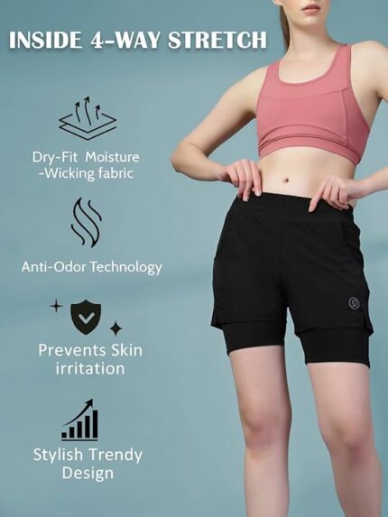 CHKOKKO Gym Shorts for Women Workout Sports Running Quick Dry Fit Double Layer Inner Compression with Pockets Breathable Lightweight Wear