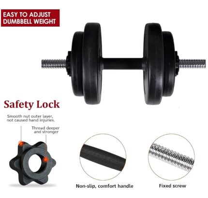 BULLAR Home Gym Set, 8kg to 20kg with 3 Straight Curl Rod and 2 Dumbbell Rods, Gym Combo, and Home Workout Equipments with PVC Weights Plates (16kg Set)