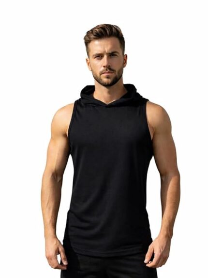CHKOKKO Men’s Cotton Blend Regular Fit Sleeveless Gym Wear Vest | Solid Stylish Hoodie Round Neck | Running Sando for Sports Workout Fitness & Casual