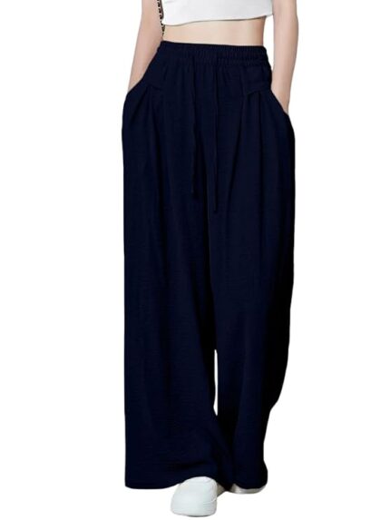 GRECIILOOKS High Waist Polycotton Trousers for Women – Flared Parachute Pants with Side Pockets | Casual Travel Cargo Pants (Available in Plus Size and Value Pack)
