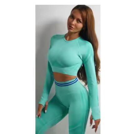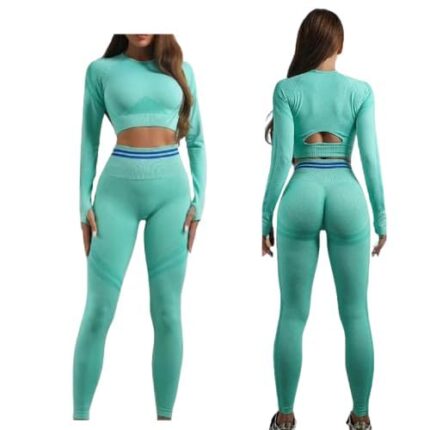 2 pc Gym Wear for Women Full Set, Scrunch Butt Lifting Leggings with Full Sleeves Crop Top Workout set, 4 way Stretchable Gym Leggings for Women High Waist-