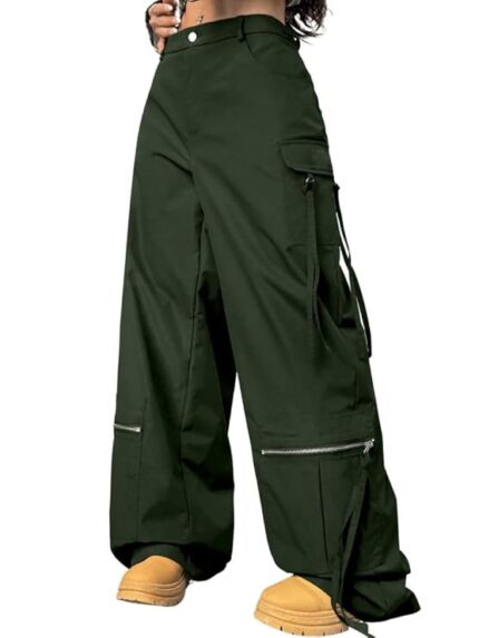 GRECIILOOKS Cargo Pants For Woman | Trousers For Womans |High Waist Cotton Trouser for Women – Flared Parachute Pants with Side Pockets |Womens Cargo Pant | Elegant for College & Events (Available in Plus Size)