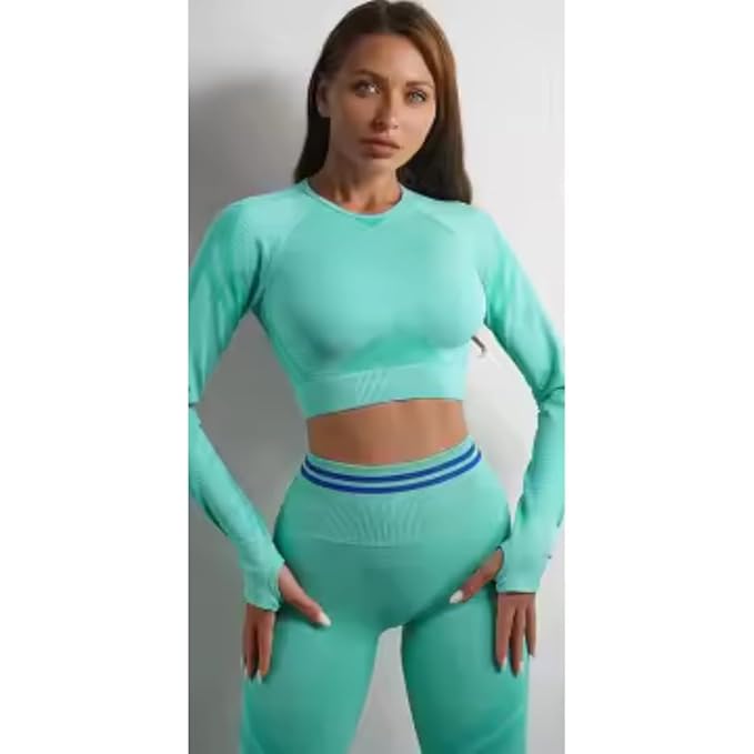 - High Waist Leggings and Crop Top: Help to show off your body curves perfectly with tummy control and butt lift. Crop top with thumb hole, make it convenient and comfortable to wear, not letting your sleeves rife up during your workouts.