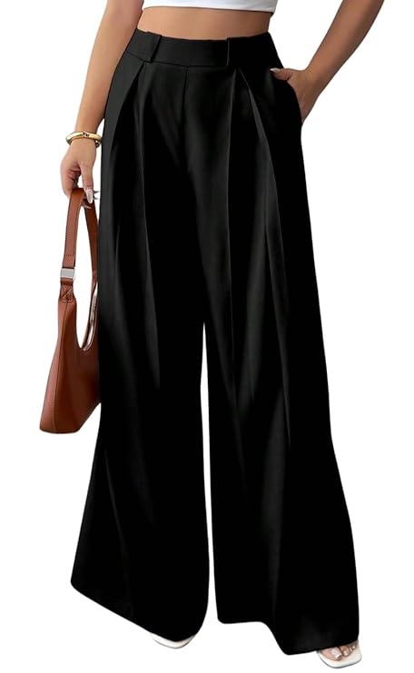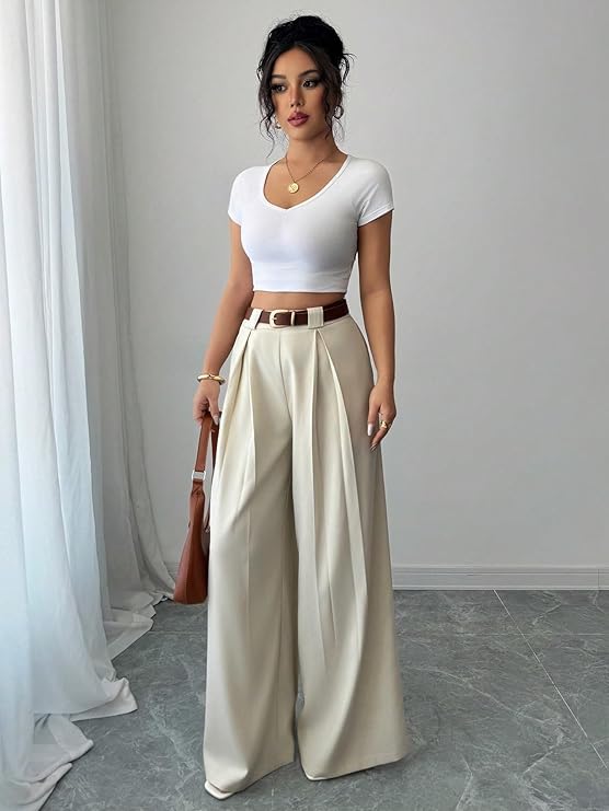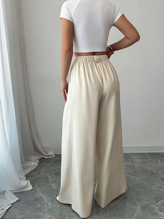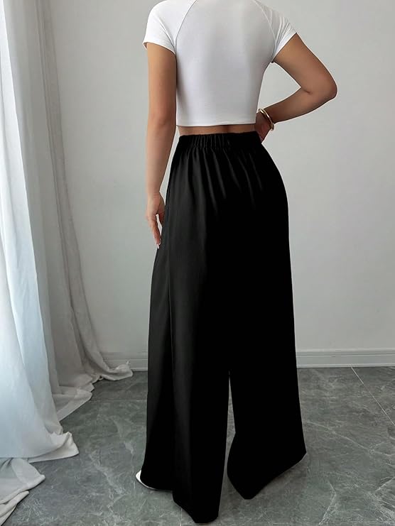 Aahwan Grey Solid High Waist Straight Korean Loose Pleated Wide Leg Trouser for Women’s & Girl’s