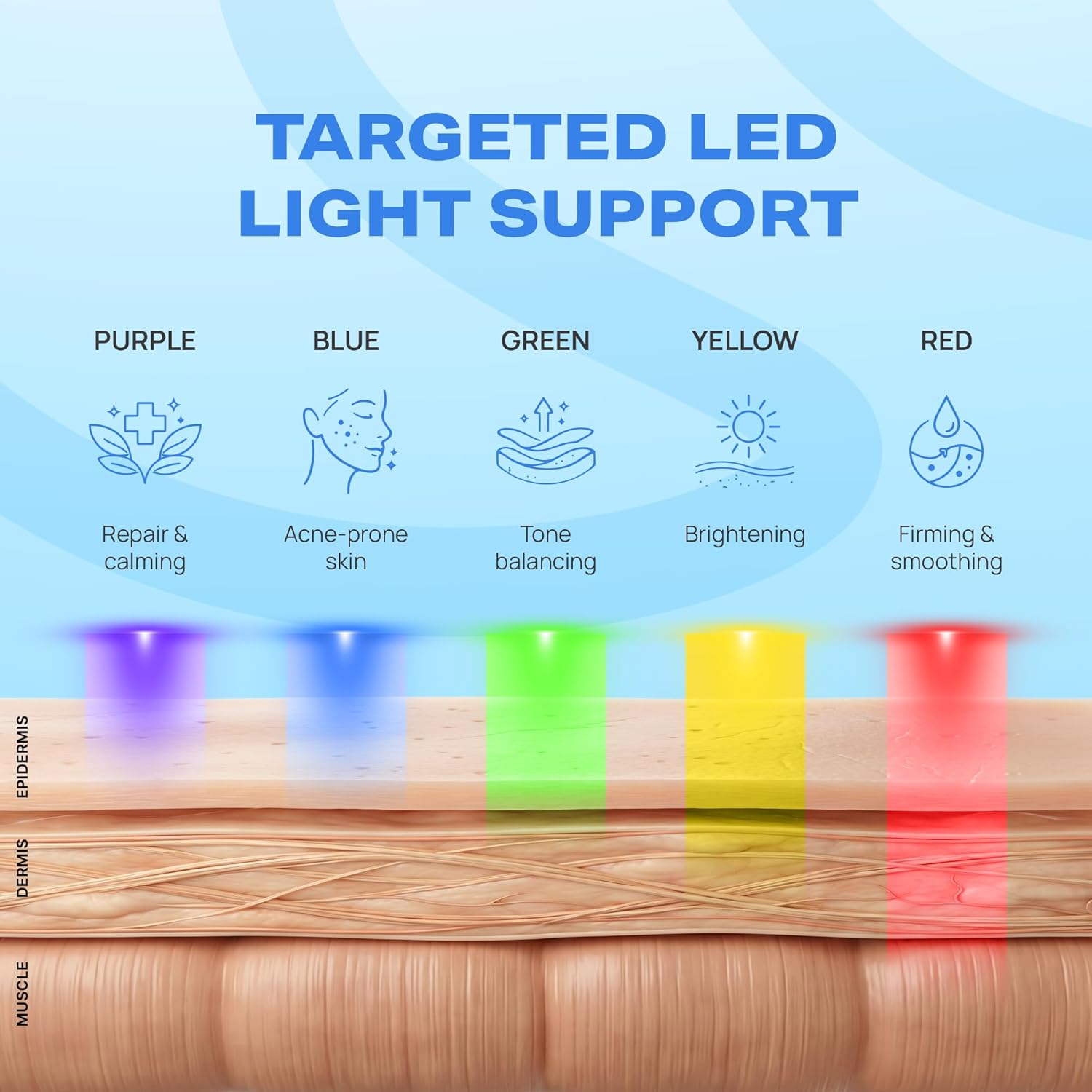 - [ Multi spectrum Light Therapy ] Integrates 5 LED light therapies, including red light, to support balanced skin tone, smoother texture, Skin repair, and brightening, a healthier-looking complexion over time.