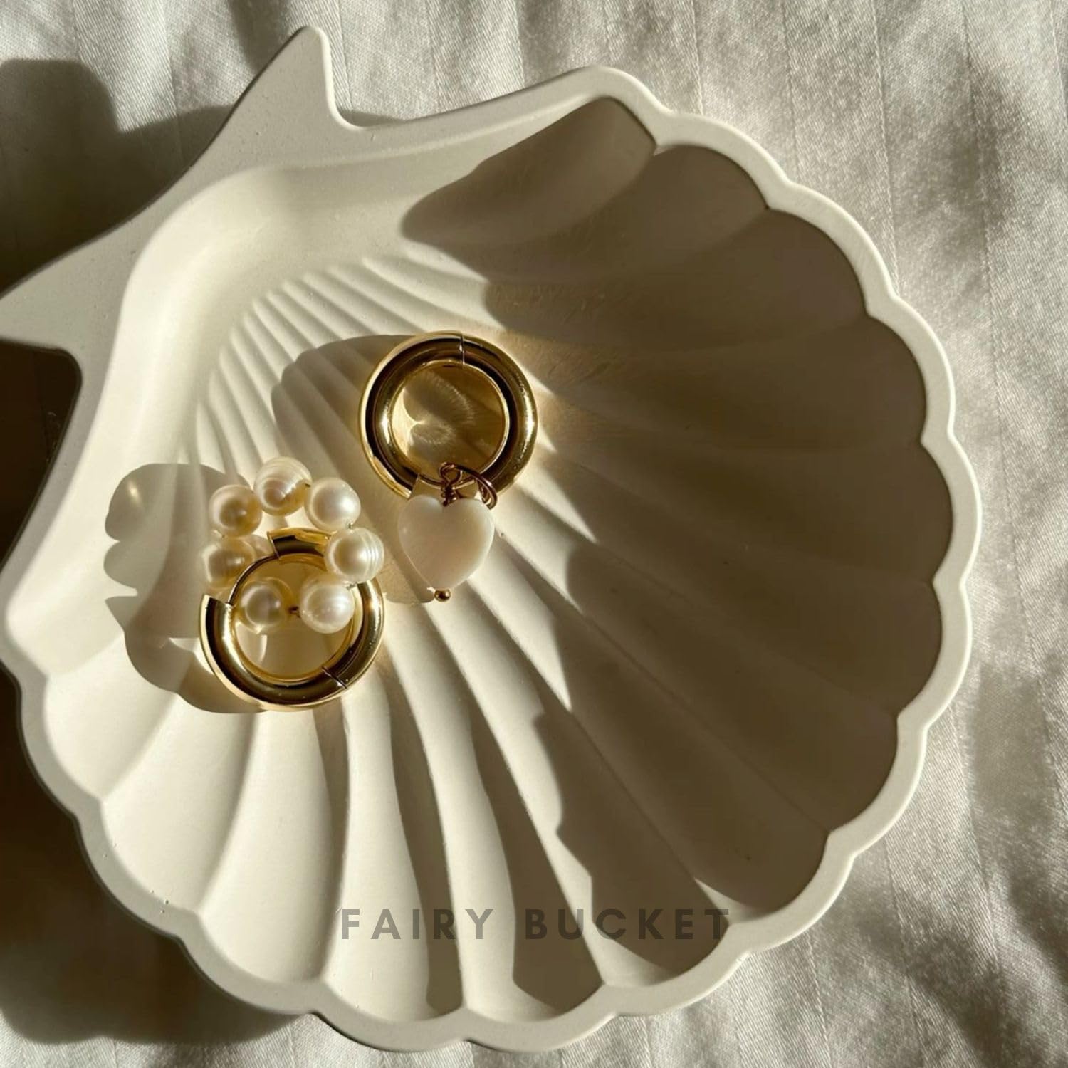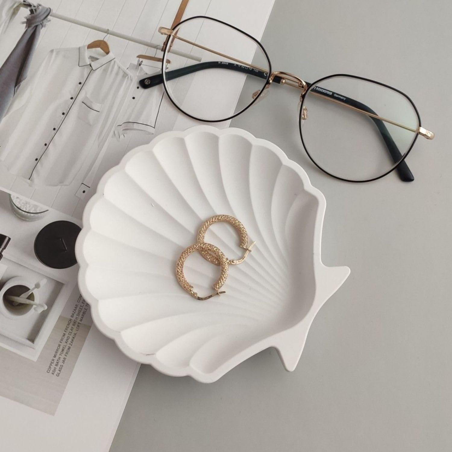 Aesthetic Handcrafted White Concrete Shell Trinket Tray | Elegant Jewelry, Makeup & Table Organizer | Multipurpose Home Decor & Candle Tray | 9.5×9.5cm