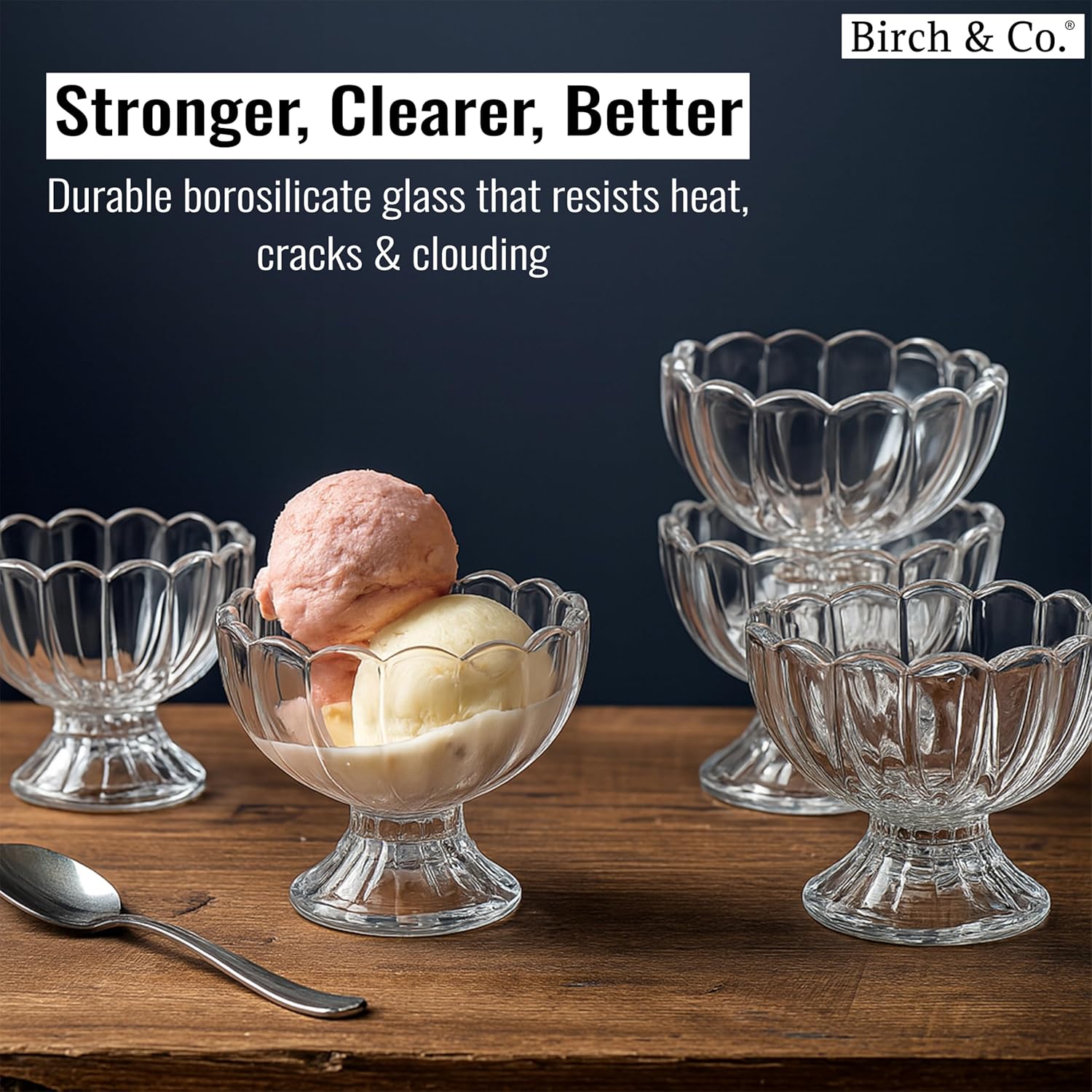 Birch & Co. Bowl Set of 6 – Ice Cream Glass Bowls Set – Elegant Dessert Serving Bowls for Ice Cream, Sundaes, Fruits & Snacks, Clear Glass Design, Durable, Perfect for Parties & Gifting, Scallop