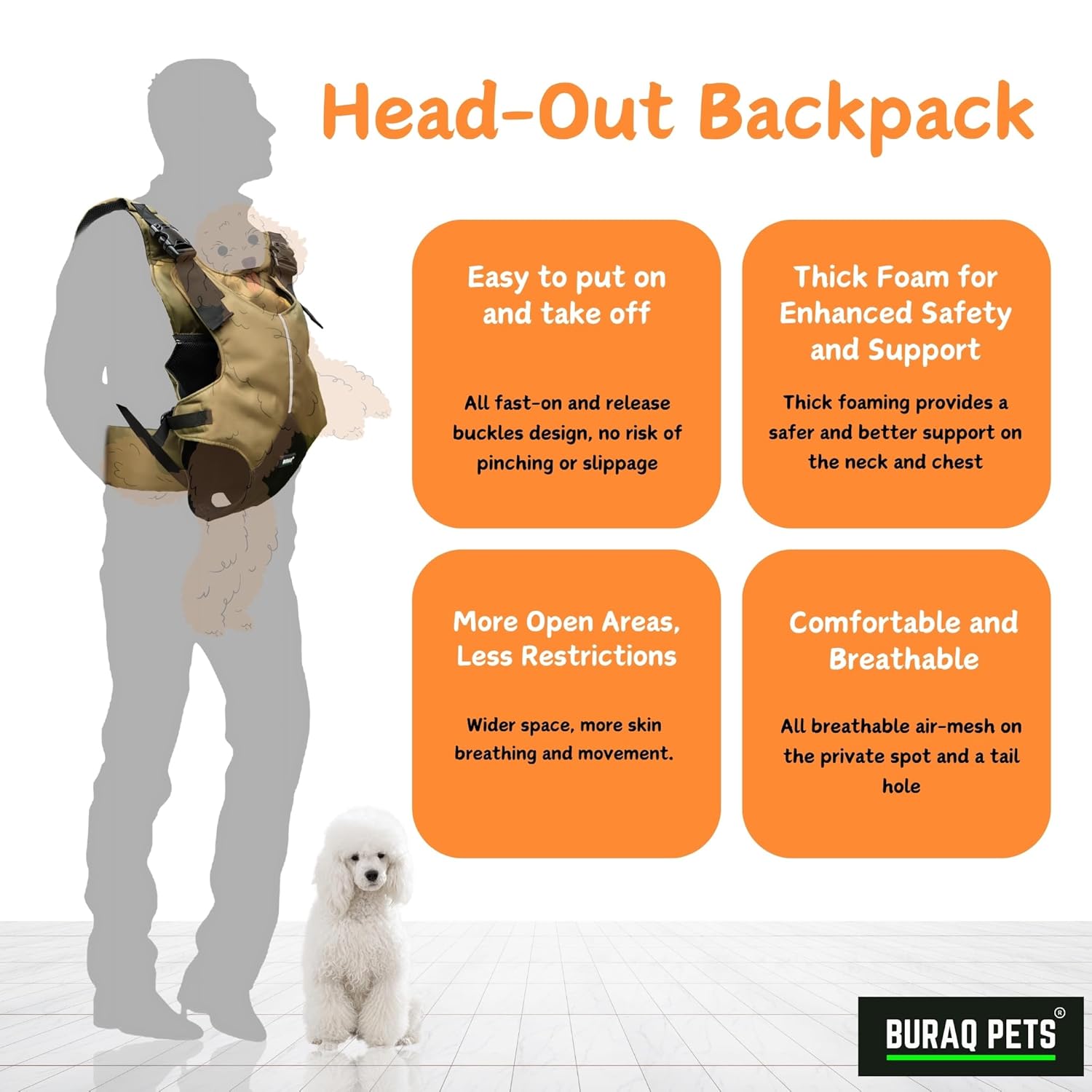 Be the first to review “Buraq Pup Explorer Head-Out Dog Carrier Backpack, Adjustable Front & Back Head-Out Feature with Wide Straps & Hip Belt Support, Travelling Pet Bag for Small Breed Puppies (Grey, S)” Cancel reply