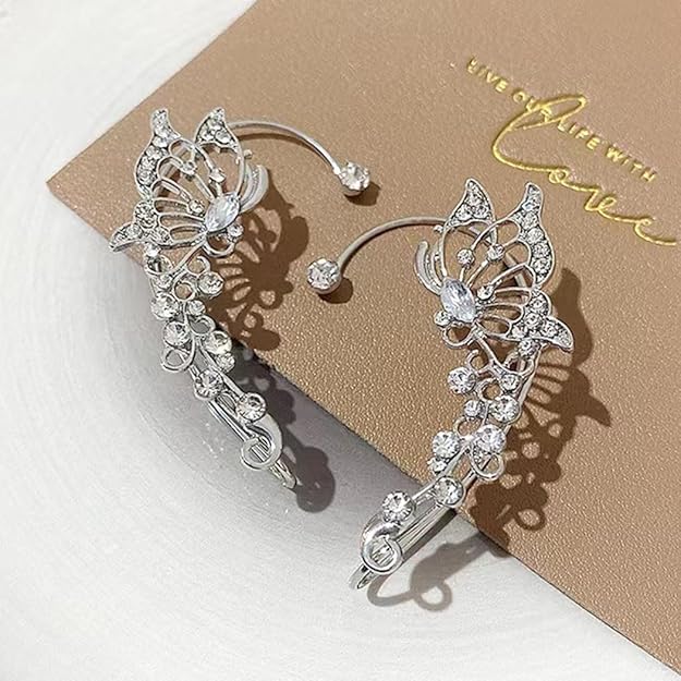 - Butterfly Ear Cuff Earrings for Women are expertly crafted from high-quality alloy and adorned with stunning rhinestones, ensuring durability and healthy material are hypoallergenic