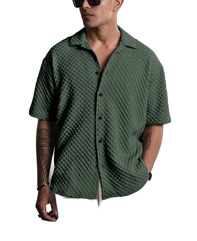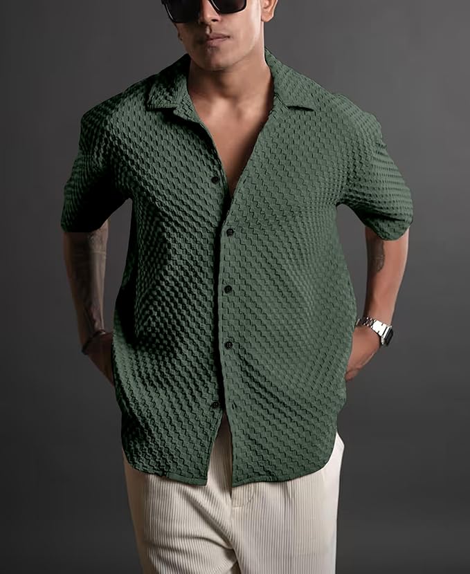 Casual Shirt for Men|| Shirt for Men|| Men Stylish Shirt||Button Down Shirts Half Sleeve Bubble Fashion Textured Shirt