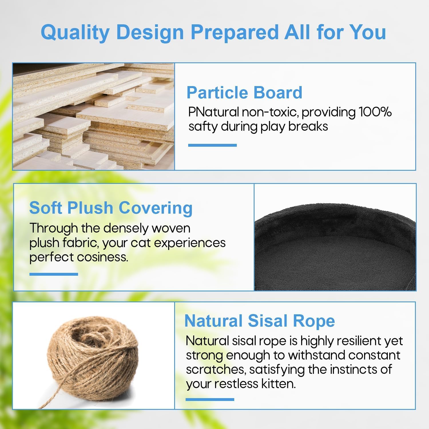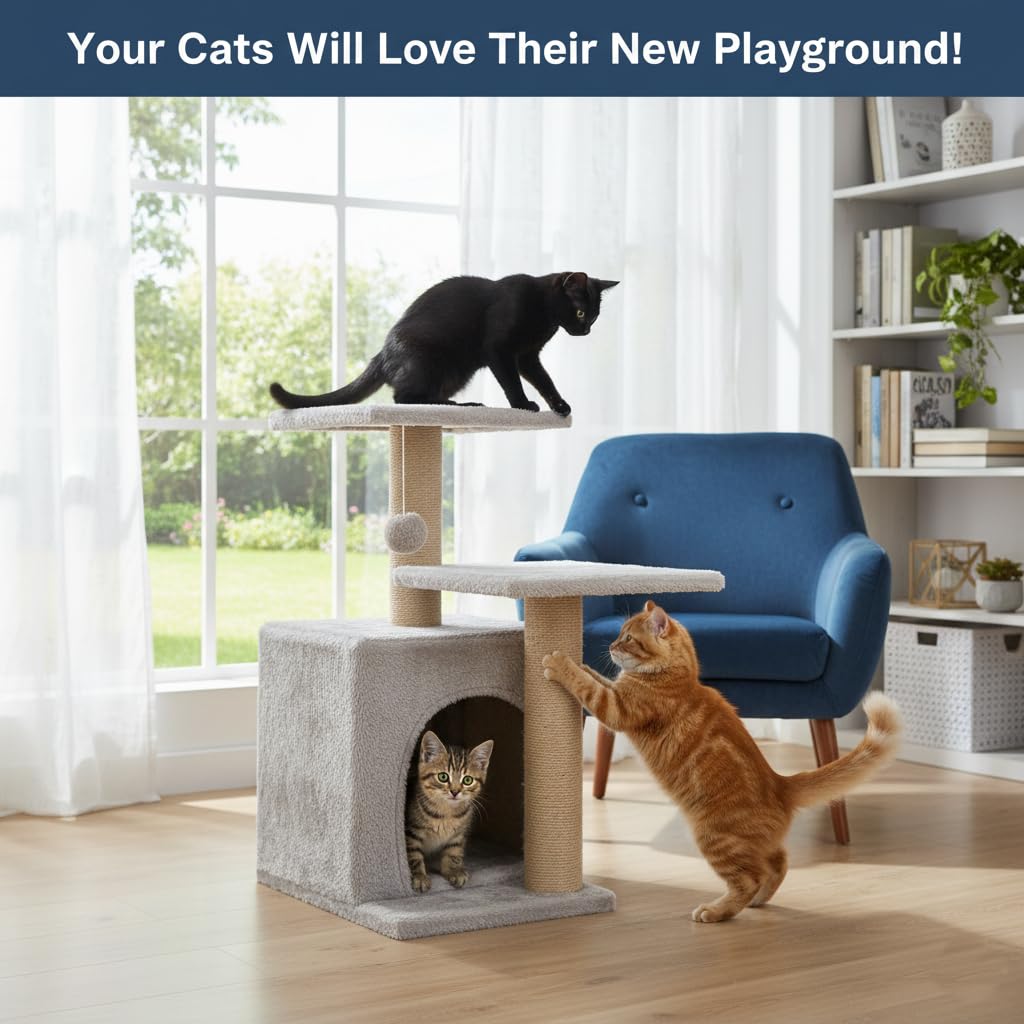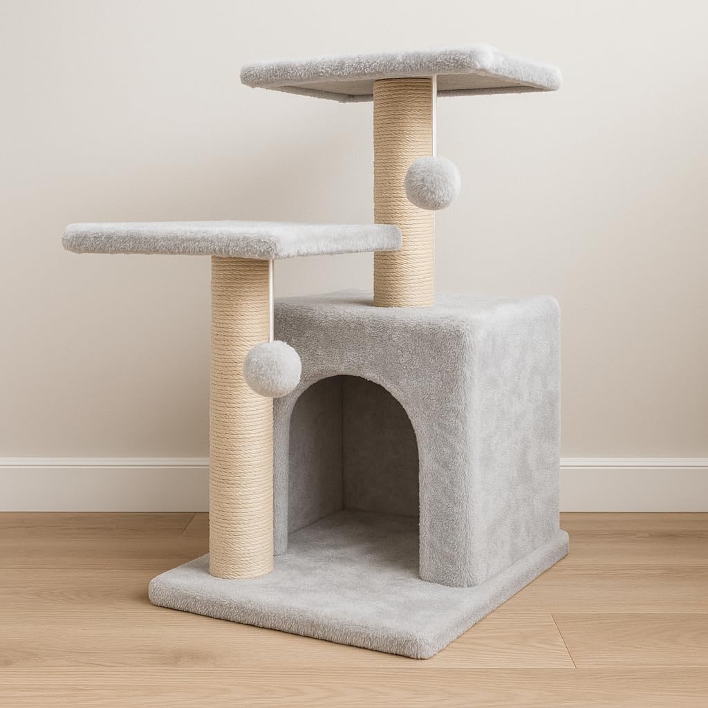 - Durable & Stable Design – Made with sturdy engineered wood, sisal-wrapped scratching posts, and a wide base to ensure maximum stability for playful cats.
