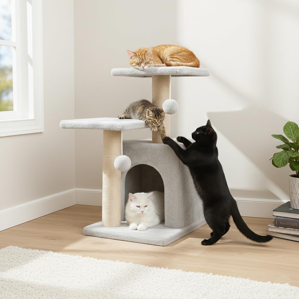 - Multi-Level Cat Activity Center – Designed with multiple tiers, platforms, and resting spots to keep your cat entertained, active, and relaxed all day.