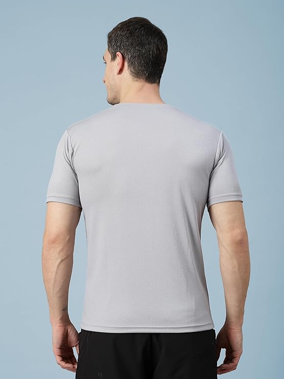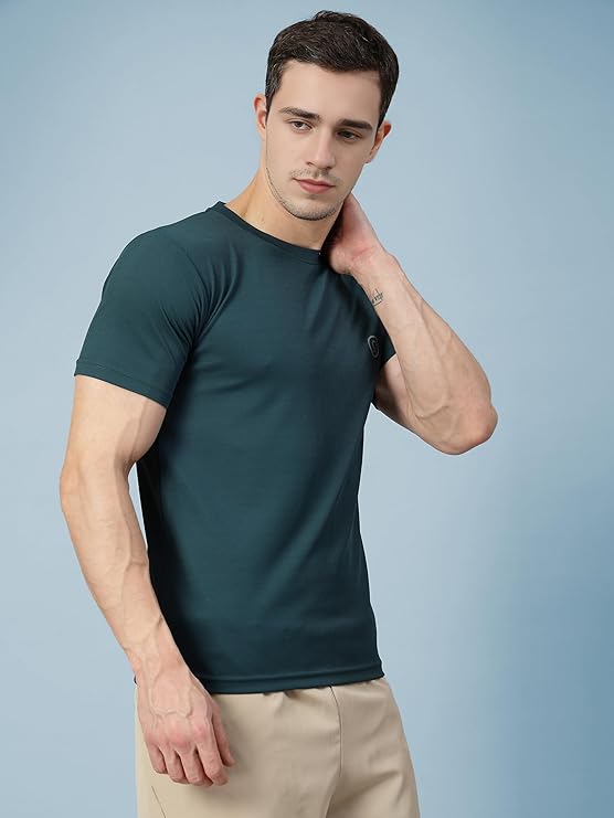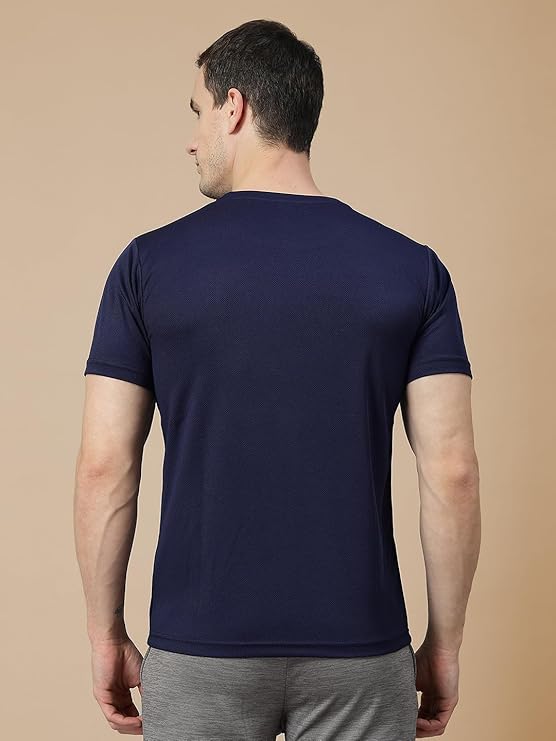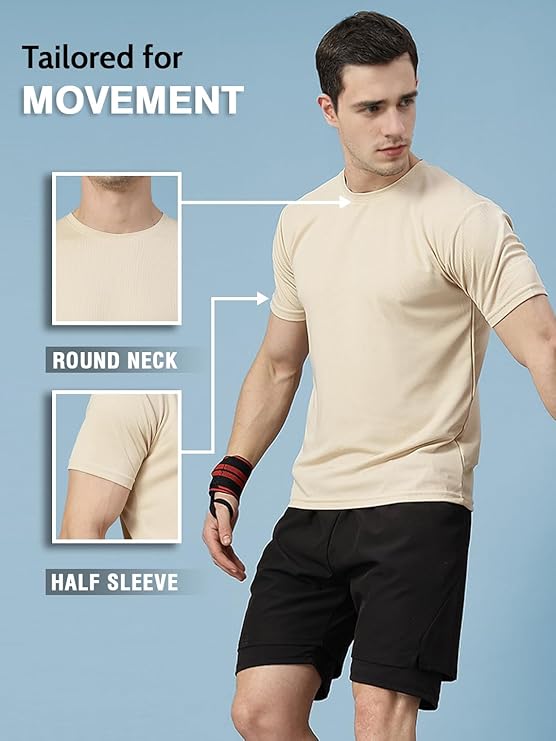CHKOKKO Men Polyester Solid Quick Dry Half Sleeve Regular Fit Round Crew Neck Active Sportswear Gym T-Shirt for Workout Training Running and Fitness Activities