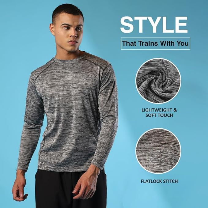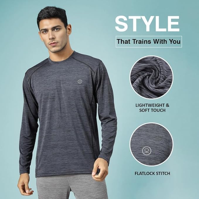 CHKOKKO Men’s Round Neck Full Sleeve Regular Fit Lightweight Quick Dry Activewear Gym T Shirt for Workout Training Running and Activities