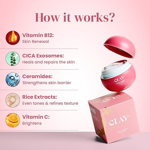 Clayco Rice & Ceramide Moisturizer | Intense Hydration & Skin Barrier Repair | With Rice Extract, Multi-Ceramide Complex, Hyaluronic Acid, Vitamin B12, Aloe & Ginseng | Lightweight, Fast Absorbing & Brightening Face Cream for All Skin Types | 50ml