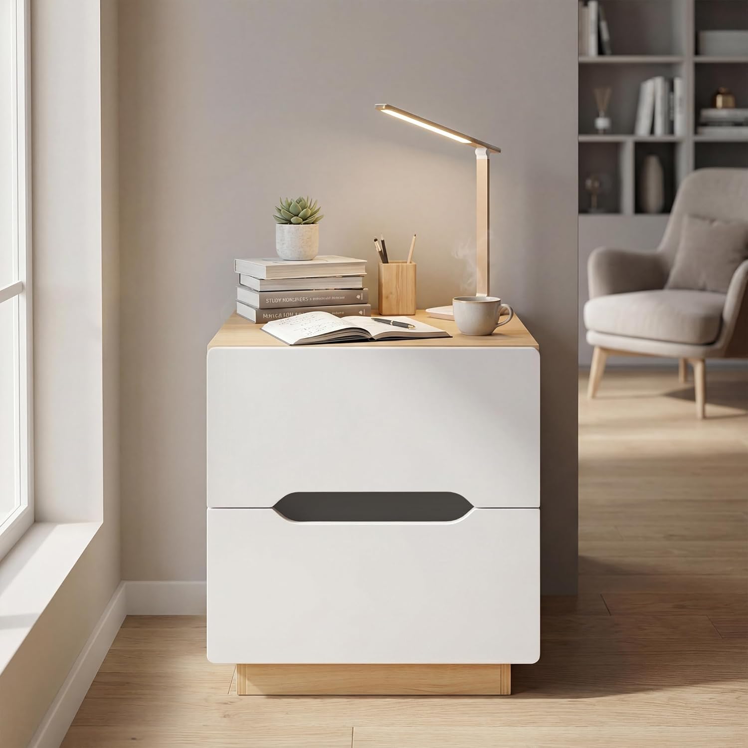 Decor & More Bedside Table with 2 Drawers | Wooden Nightstand for Bedroom with Smooth Sliding Drawers & Open Storage Shelf | Space-Saving Side Table for Living Room | DIY