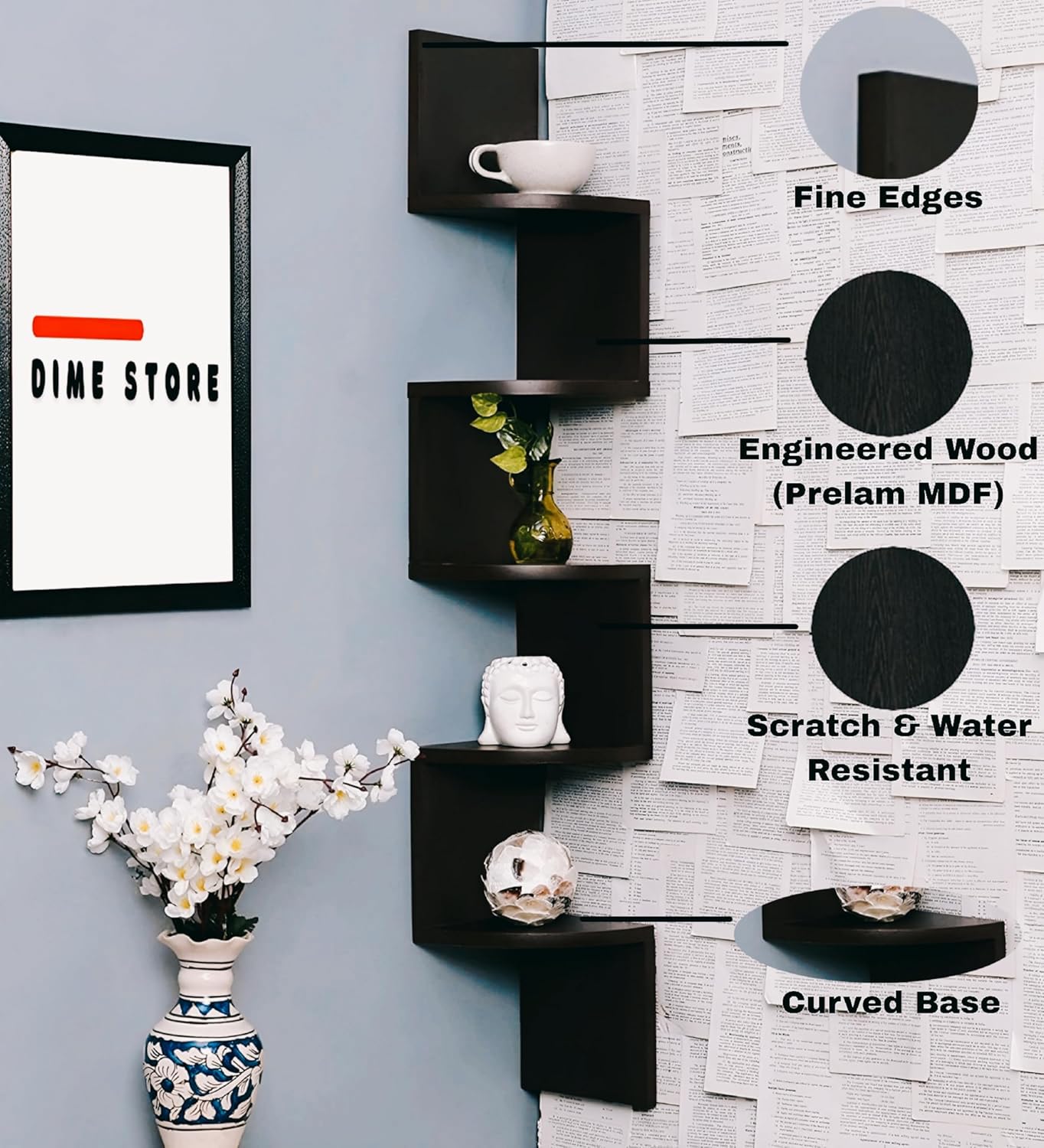 | Shape | wall corner shelf for home decor items |