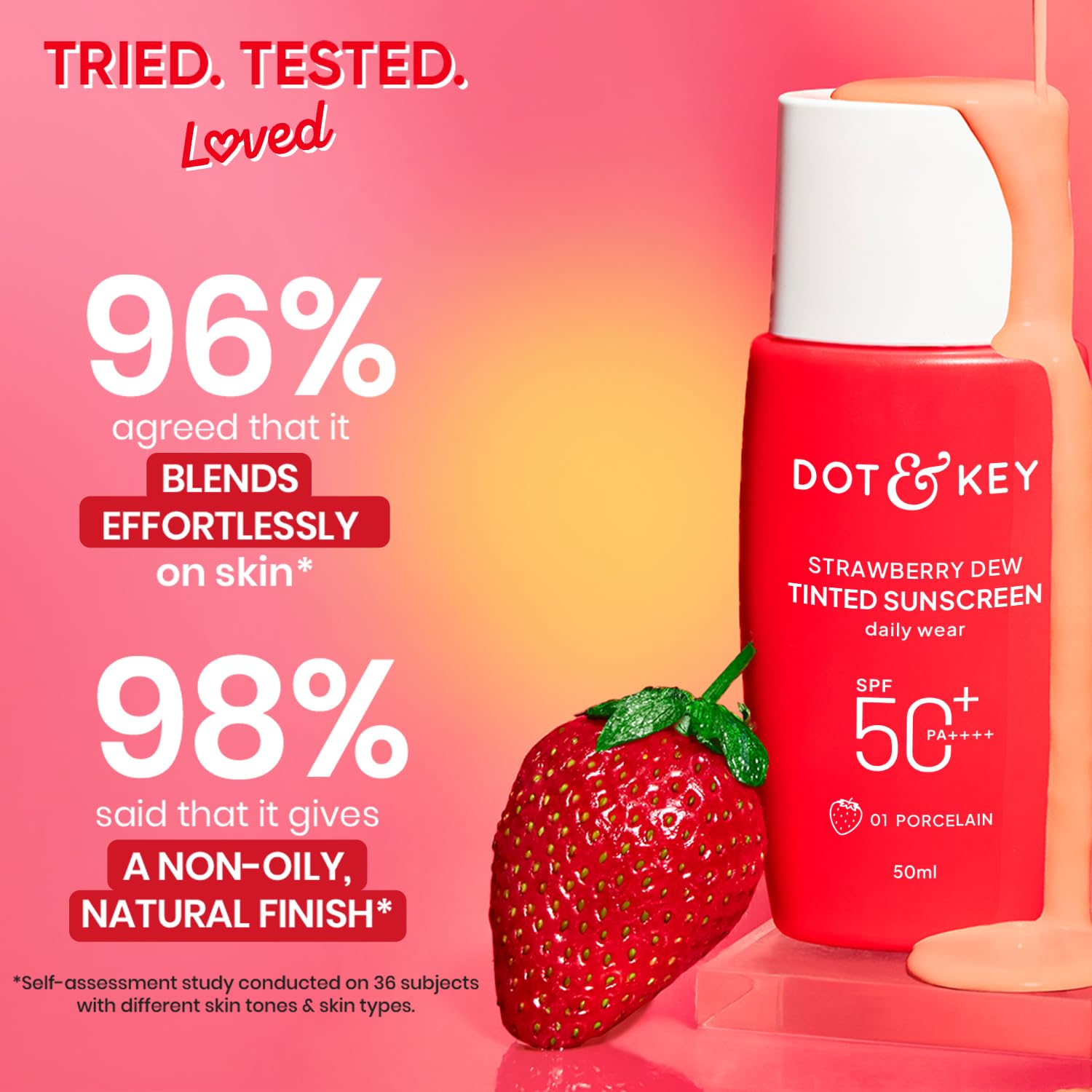 Dot & Key Strawberry Dew Tinted Sunscreen SPF 50+ Pa++++ – 01 Porcelain In- Vivo Tested | Protection Against UVA & UVB | Broad Spectrum, Water & Sweat resistant | For All Skin Types | 50ml