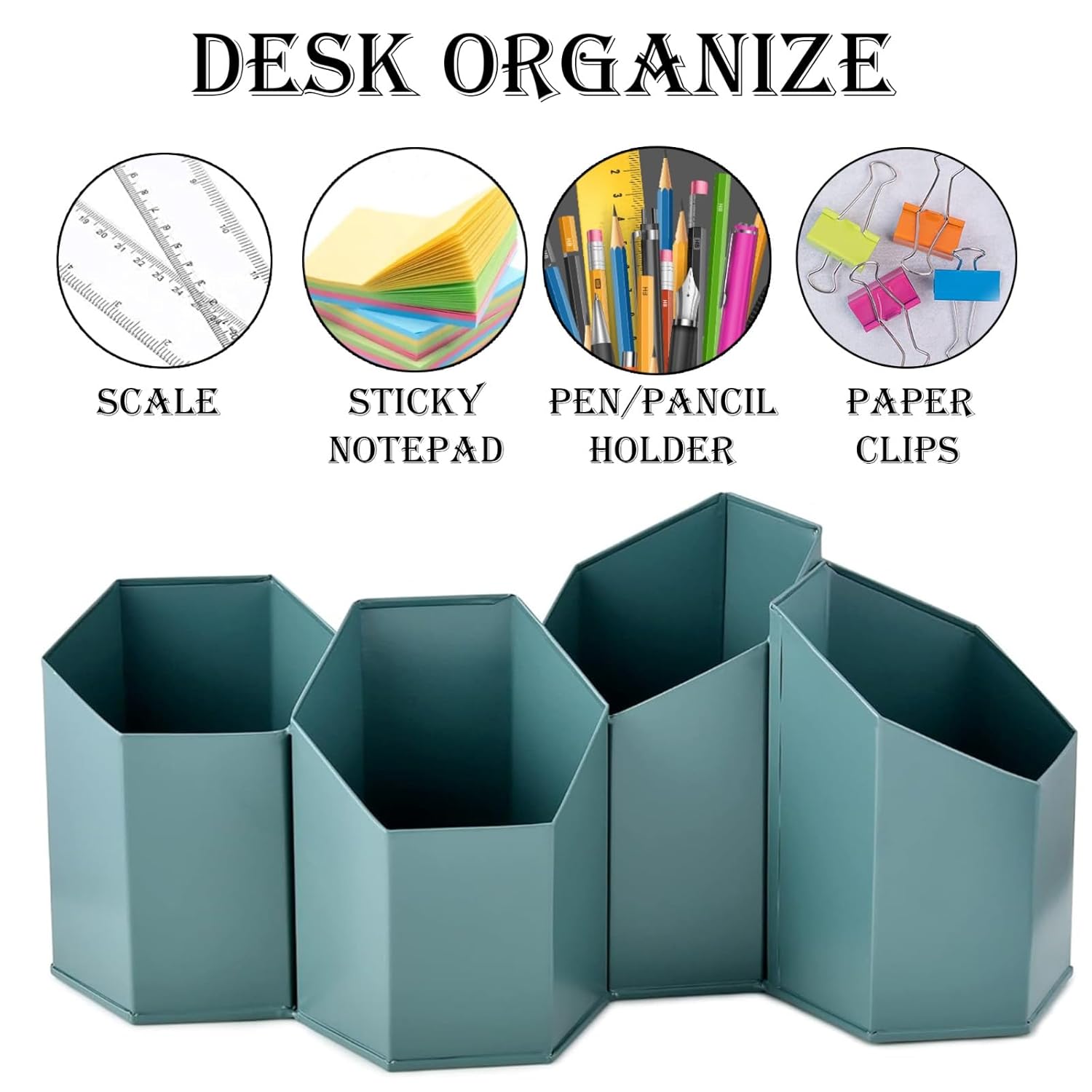 Elan Metal All In One Multifunctional Office Supplies Desk Organizer (Edgestationary, Moss Green)