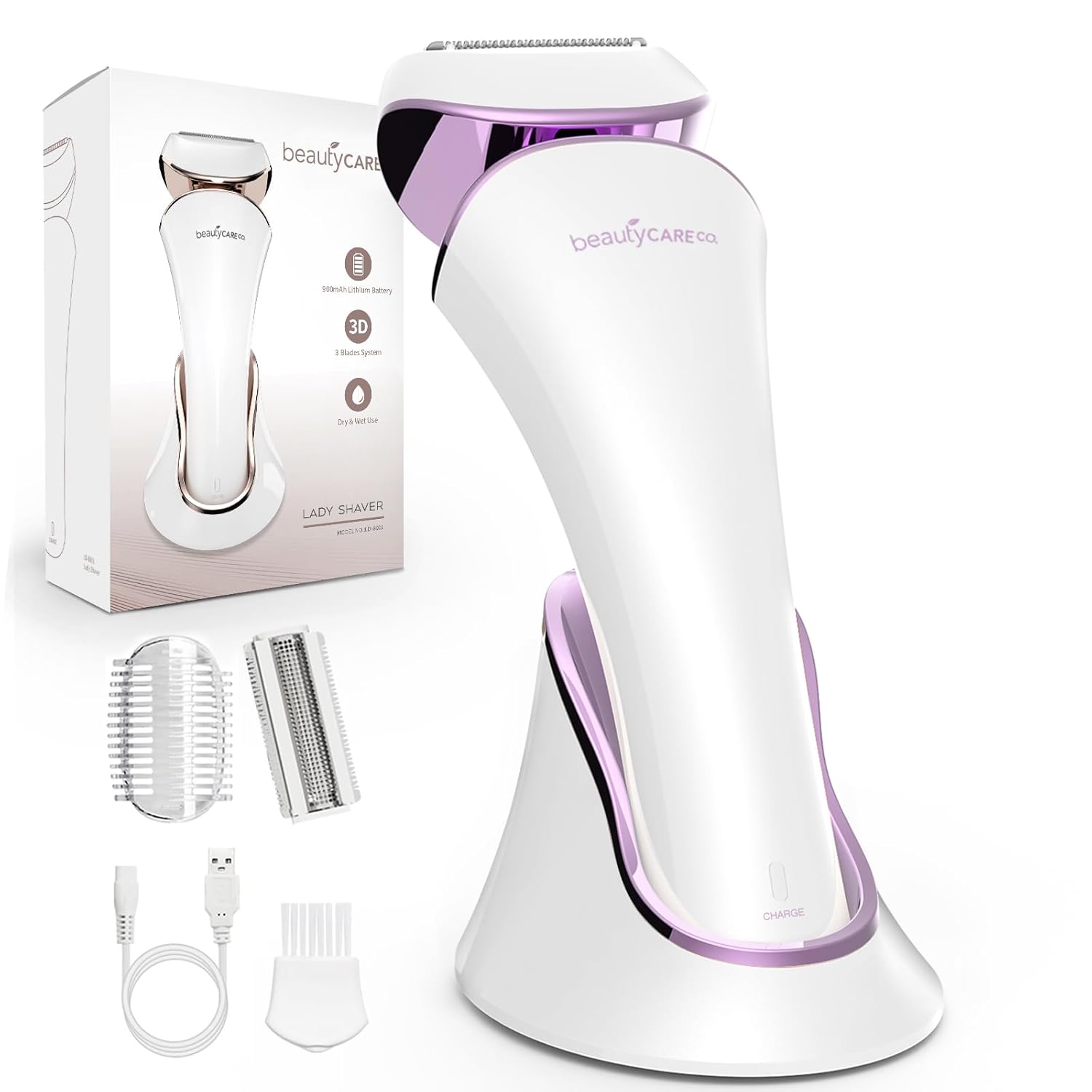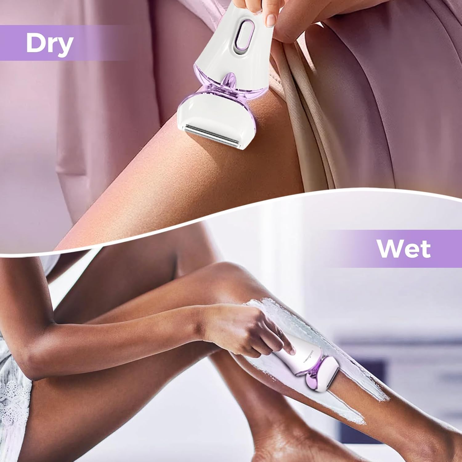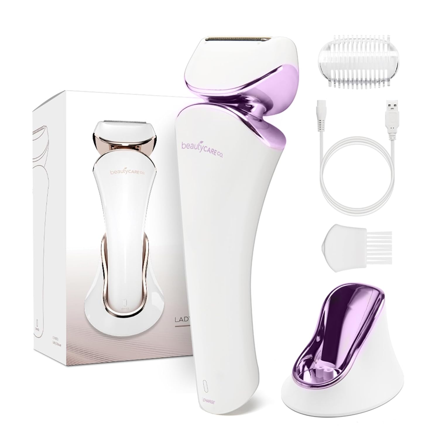 Electric Body Shaver Trimmer for Women – BEAUTYCARE Cordless Razor for Women Portable Lady Shaver for Legs, Arm, Underarms, Bikini, USB Rechargeable, Wet & Dry Waterproof Bikini Trimmer for Woman, Purple