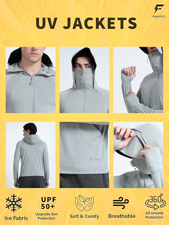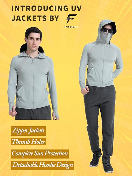 FABSPORTS Men’s UV Protection Sun Screen Jacket, Sun Protection Clothing, Lightweight with UPF 50+ Protection for Outdoors