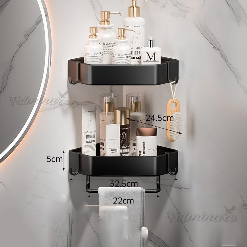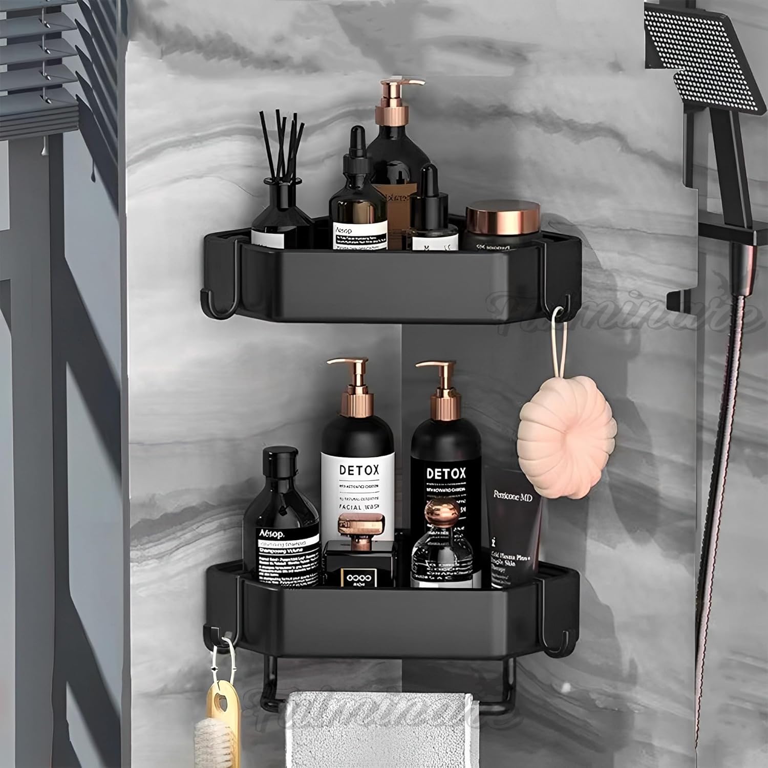 Fulminare Self-Adhesive Aluminium Bathroom Corner Shelf Rack Bathroom Corner Organizer Stand Bathroom Organisers Storage Racks Bathroom Shelf/Shelves Corner (Bishop)