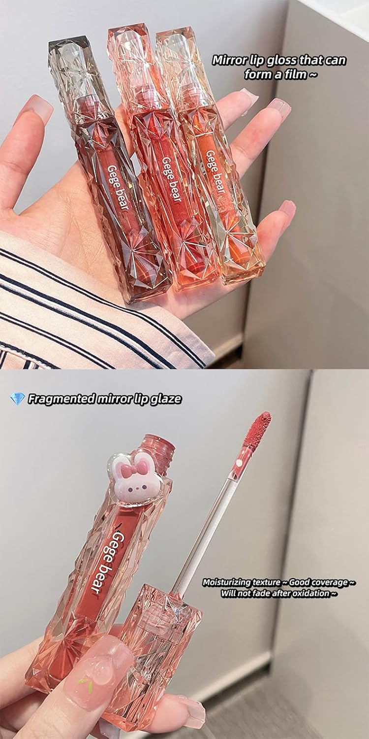• 🌟 Shine Bright with Crystal Diamond Glamour: Unleash your inner glow with the Gege Bear Crystal Diamond Light Mirror Lip Glaze—designed with a faceted, jewel-cut tube that reflects light like a diamond and delivers high-shine, mirror-like gloss for an irresistible pout. 💎✨