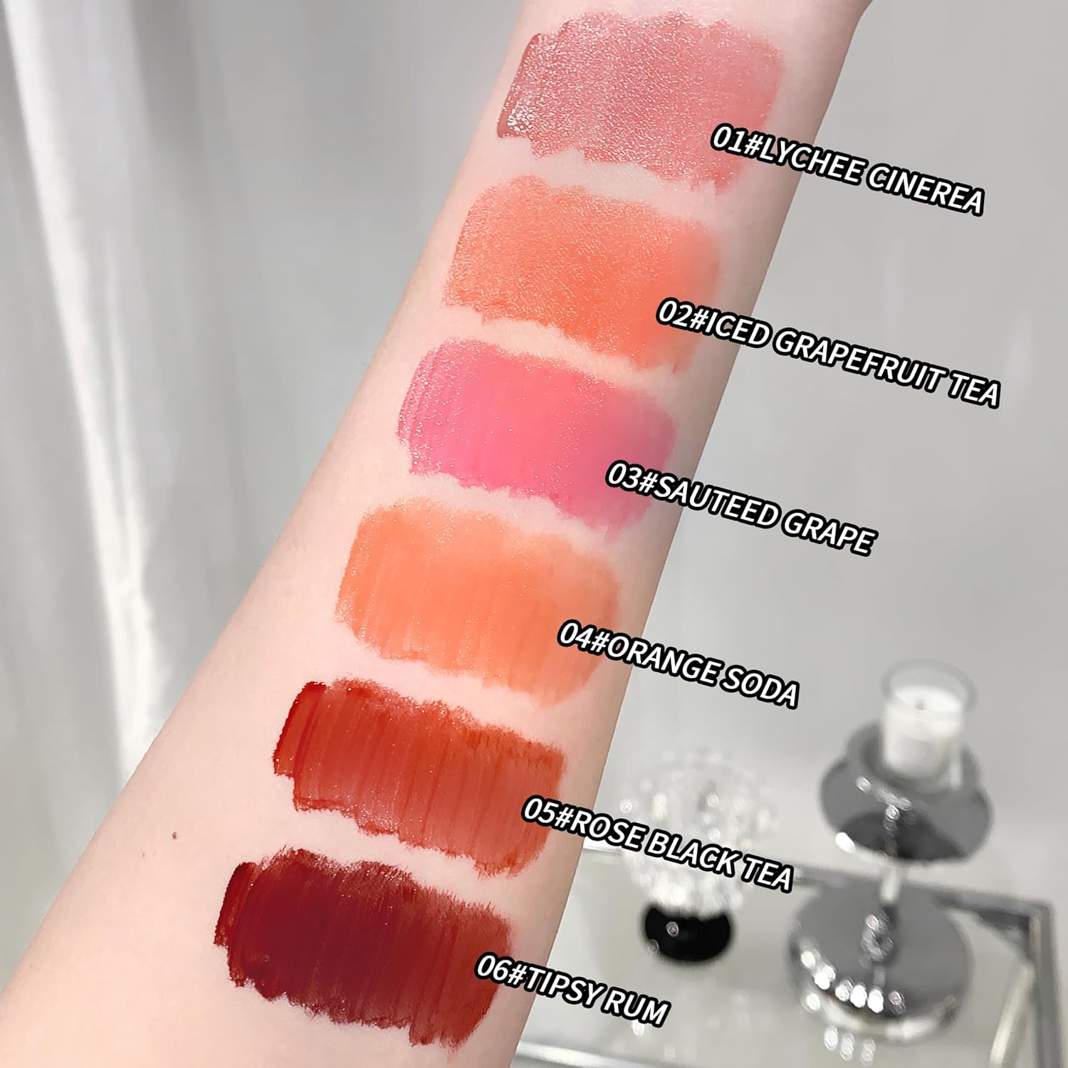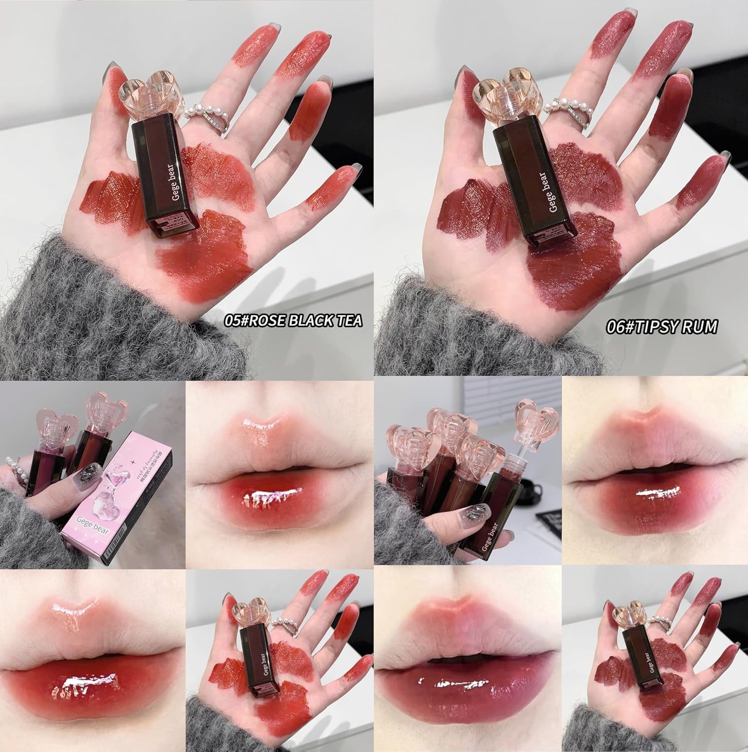 Gege Bear Transcolor Hydrating Lip Glaze | High Glossy Long Lasting Formula | Heart-Shaped Cap with Brush Applicator | Stunning Shades from Light Pink to Deep Red | Non-Sticky Liquid Gloss | Non-Transfer Waterproof | Perfect Smooth Finish for Women (06# Tipsy Rum, 3g)