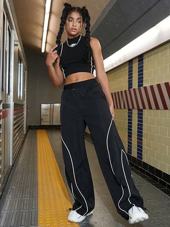 - Bold Parachute Style: Stand out in trendy parachute pants for women baggy—flared silhouette for streetwear and comfort.