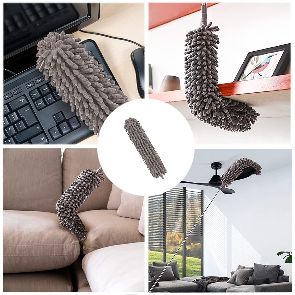 • 【Duster with Extension Pole】 Value for money!This microfiber hand duster set has a extendable long pole with 3 replacement duster head(1*bendable microfiber duster head,1*chenille crevice duster head, 1*cobweb duster head) and a dusters with extendable pole. Replacing different types of duster brush heads can handle different cleaning scenarios, keeping your home away from dust.