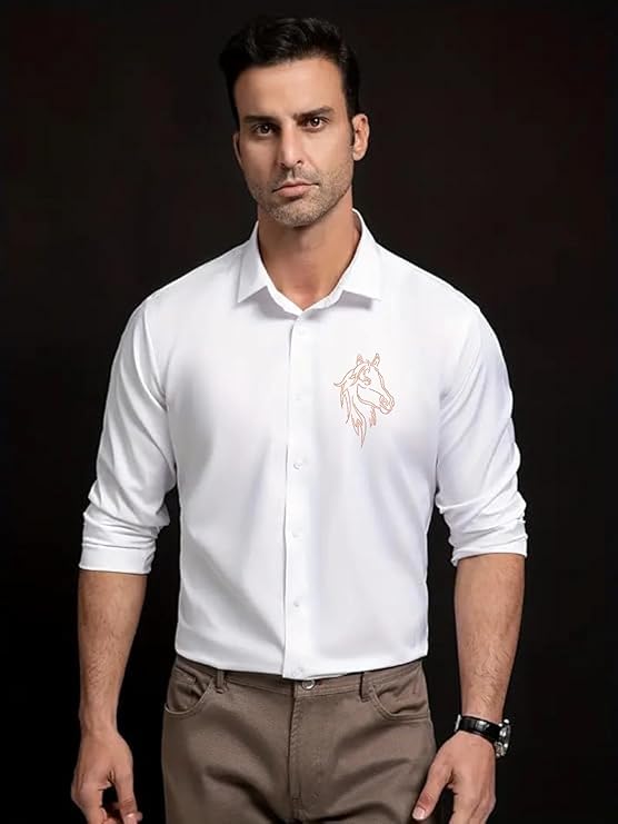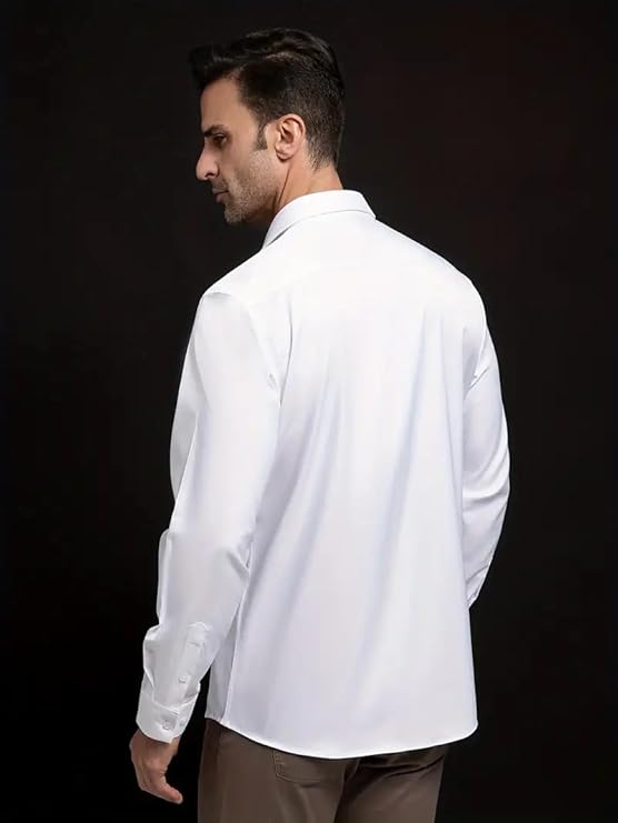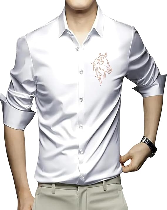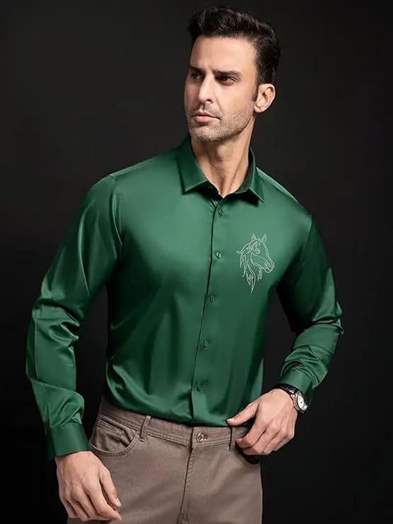 IndoPrimo Men’s Satin Shirt with Spread Collar Neck Line Solid Pattern Full Sleeves Regular Fit Western Style and Standard Length