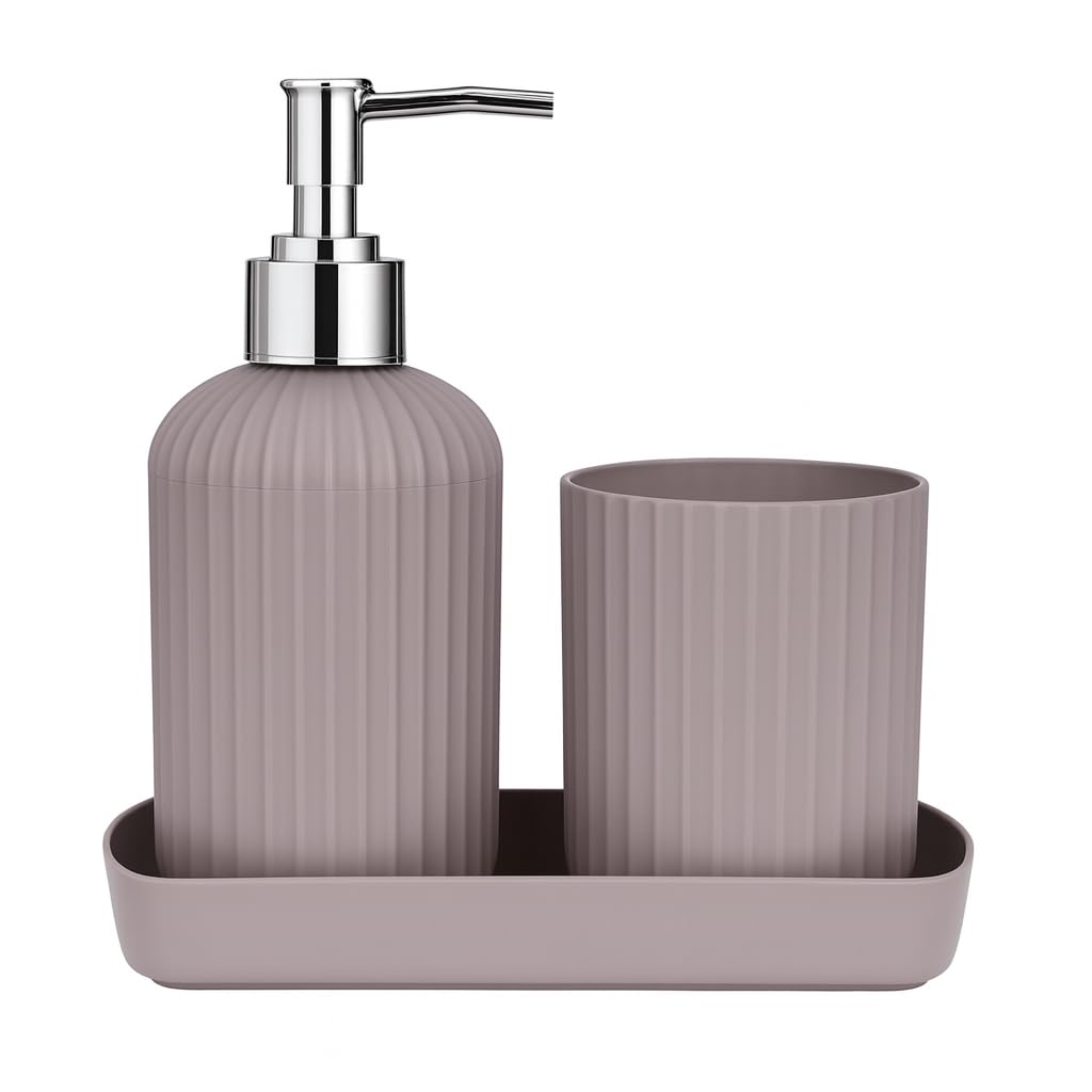 LAGET® Bathroom Accessories Set for Utility and Toothbrush Holder with Vanity Tray for Bathroom Decor | Handwash Liquid Soap Dispenser Pump for Bathroom, Kitchen, Wash Basin, Sink (Grey)