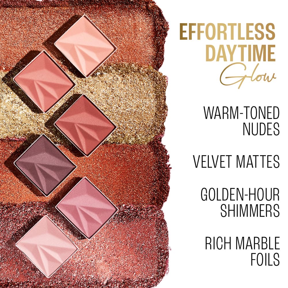 - GILDED GLOW PALETTE: Features warm neutrals, rose-gold tones, and sunlit radiance, perfect for daytime looks; pairs beautifully with highlighter makeup and blush.