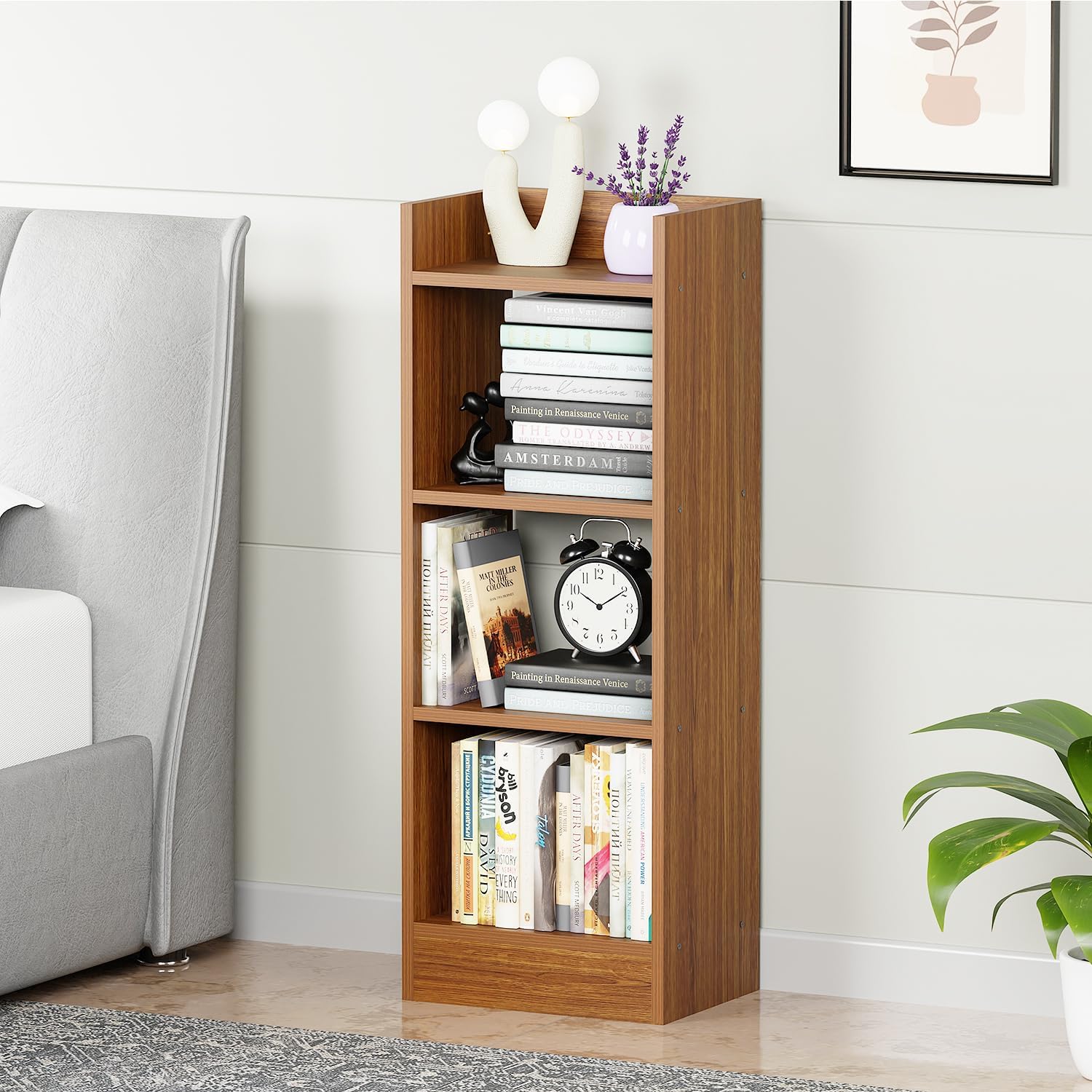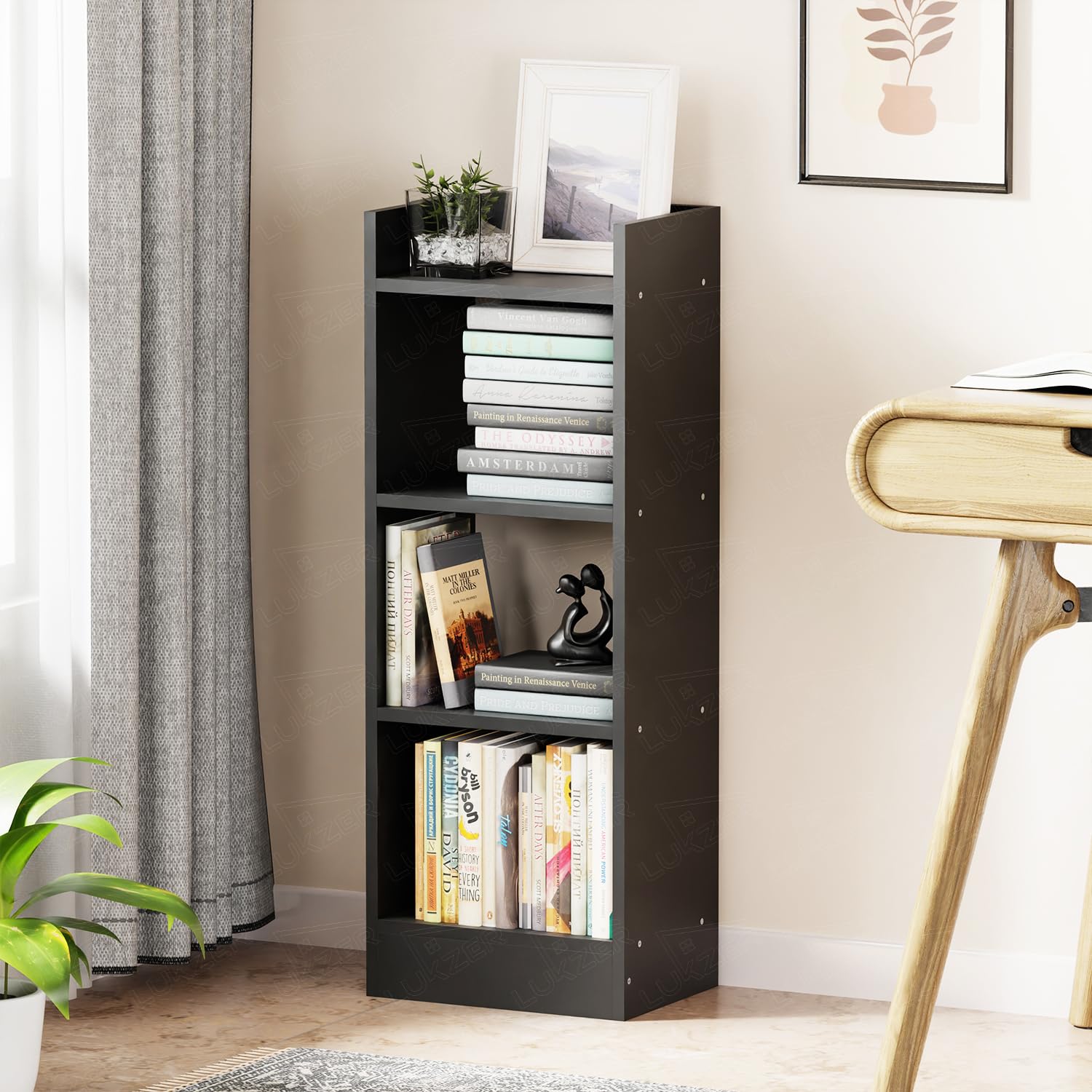 - Large Storage Bookcase: Features 3 open shelving spaces this bookshelf provides ample space for placing and organizing your books, plants, and collections.
