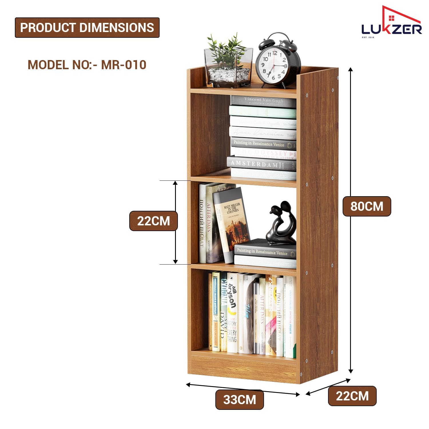 Be the first to review “Lukzer 3 Layer Engineered Wood Multipurpose Rack Bookshelf Storage Organizer Stand (MR-010/Oak Brown/80x33x22cm)” Cancel reply