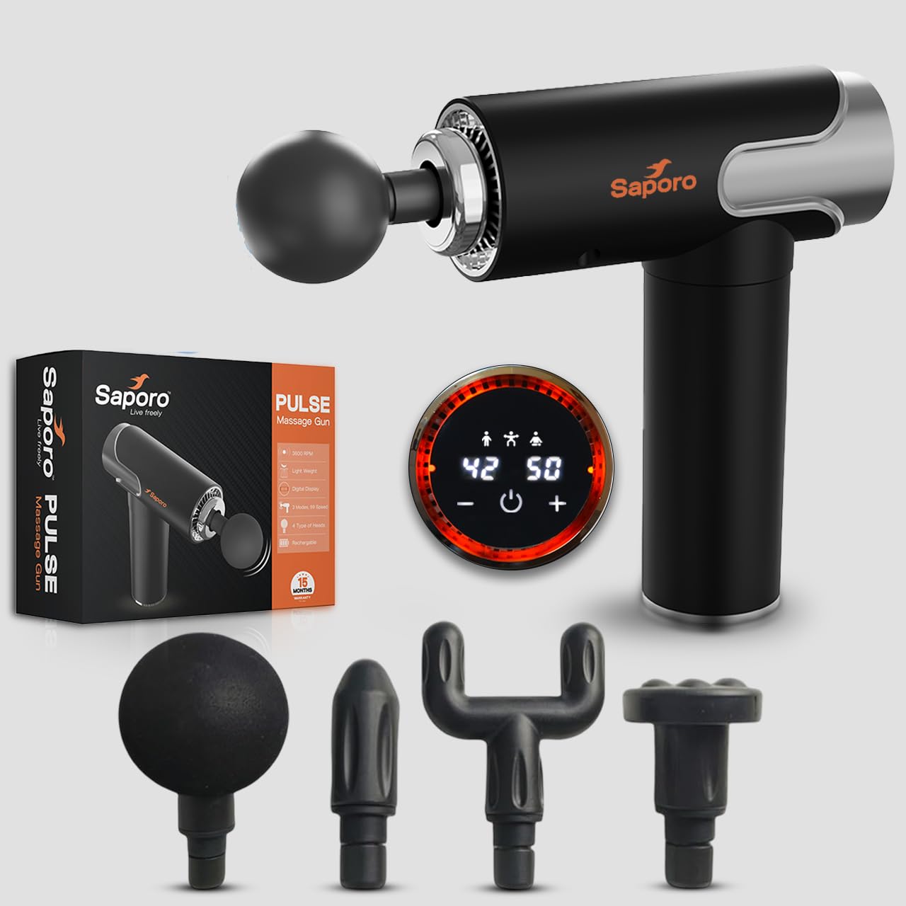 - 4 Interchangeable Massage Heads for Targeted Relief – Comes with 4 specialized massage heads designed to target different muscle groups with precision, delivering effective full-body massage from deep tissue therapy to gentle care for sensitive areas.