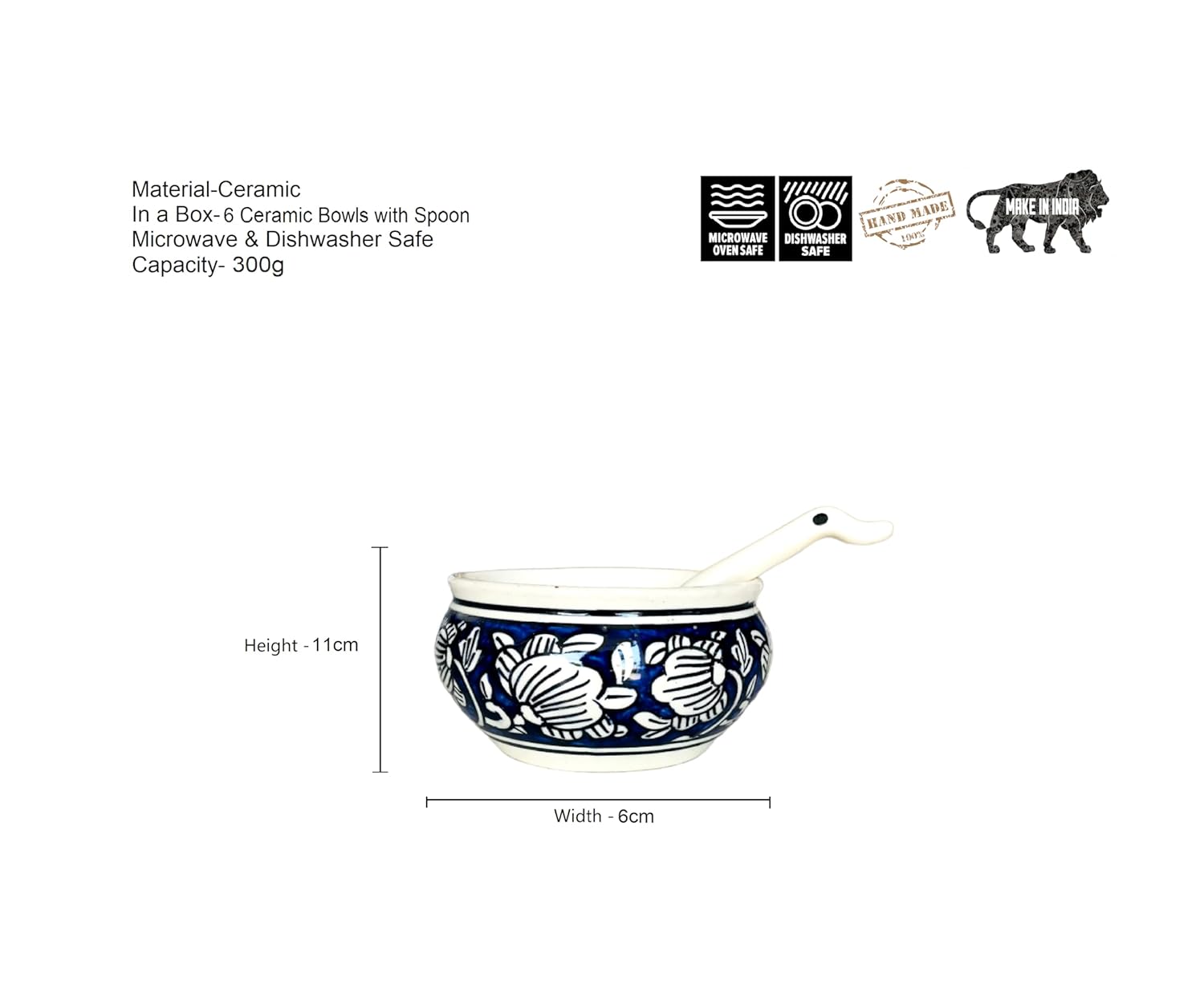 - 📏 Perfect Size – Set includes 6 bowls (300ml each) and 6 matching ceramic spoons, designed for comfortable, generous servings.
