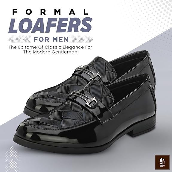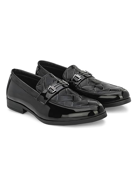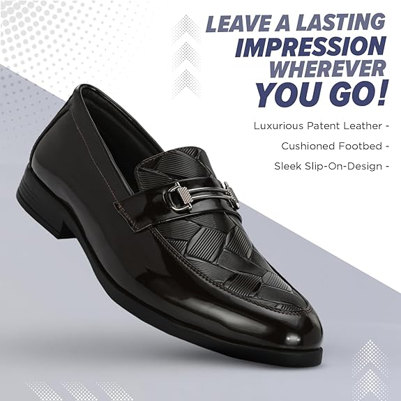 Mens Ascent Formal Shoes |Patent Faux Leather Office Wear Slip-on Shoes | Shinny & Glossy | Buckle Design | Comfortable |Perfect for Formal Wear, Business Casual, and Parties