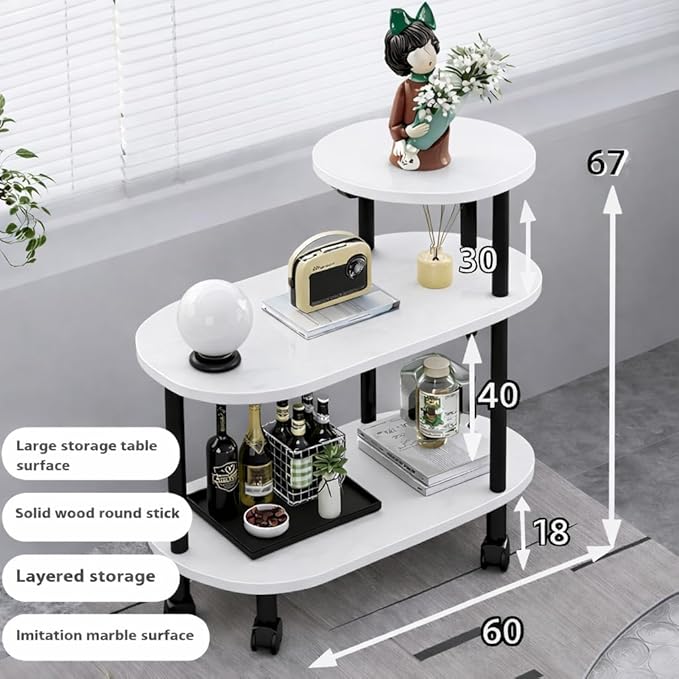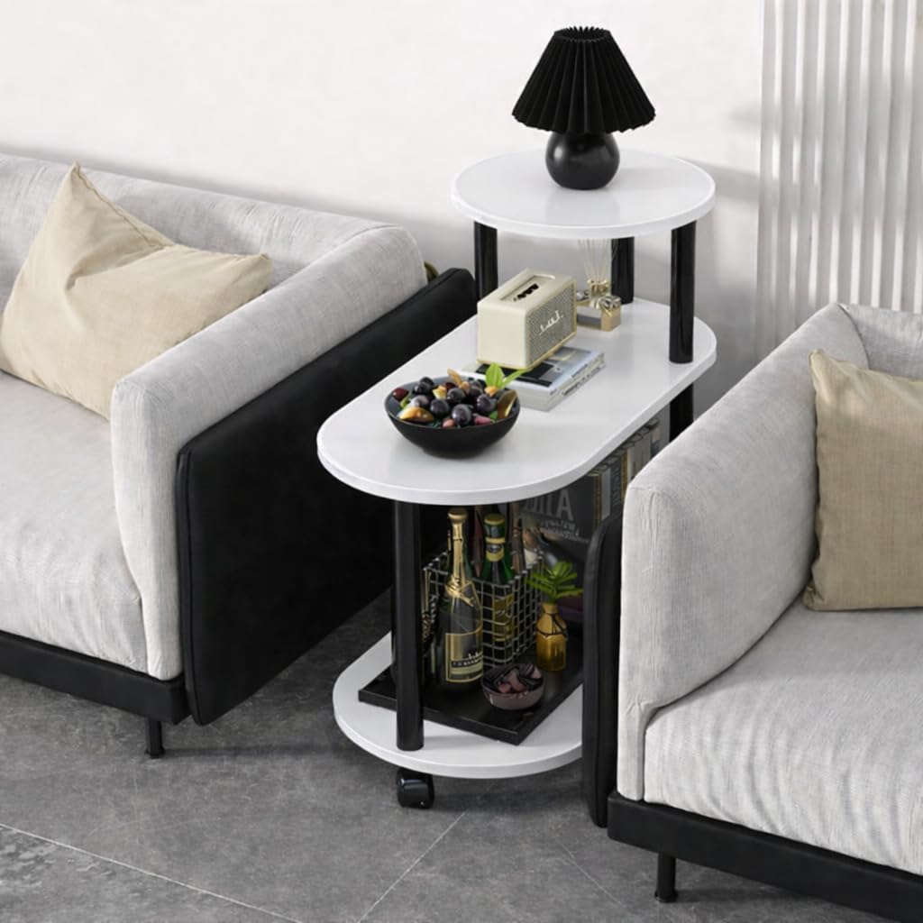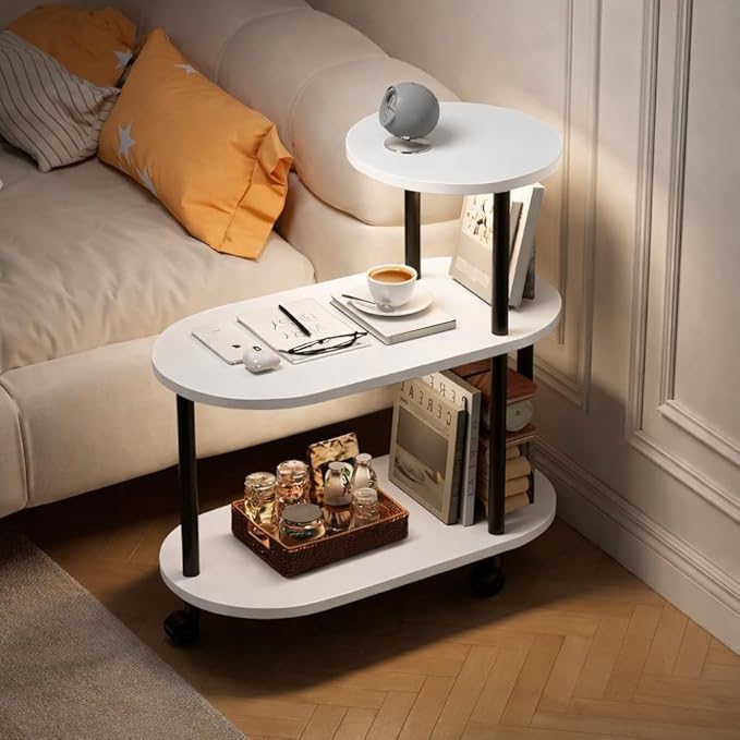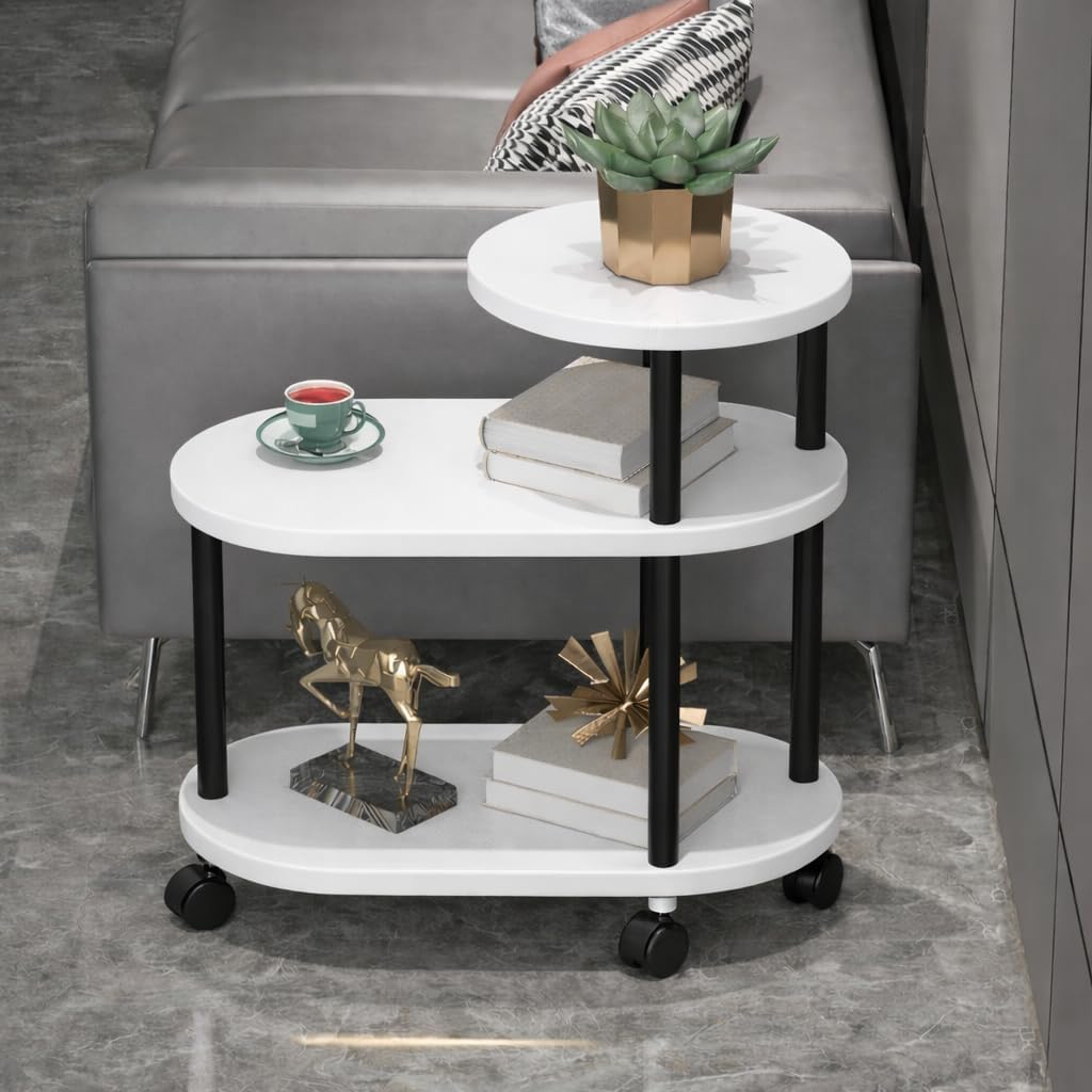 Modern 3-Tier Rolling Bed Side Table | Corner Fit Storage Stand for Bedroom & Living Room | Stable & Durable Structure