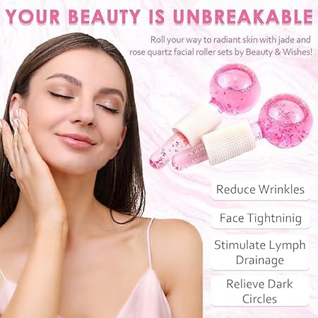 - Gently roll the ice globes in upward motion on your cheeks, jawline, and forehead