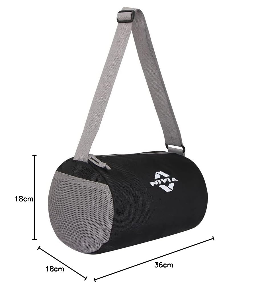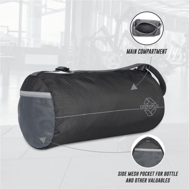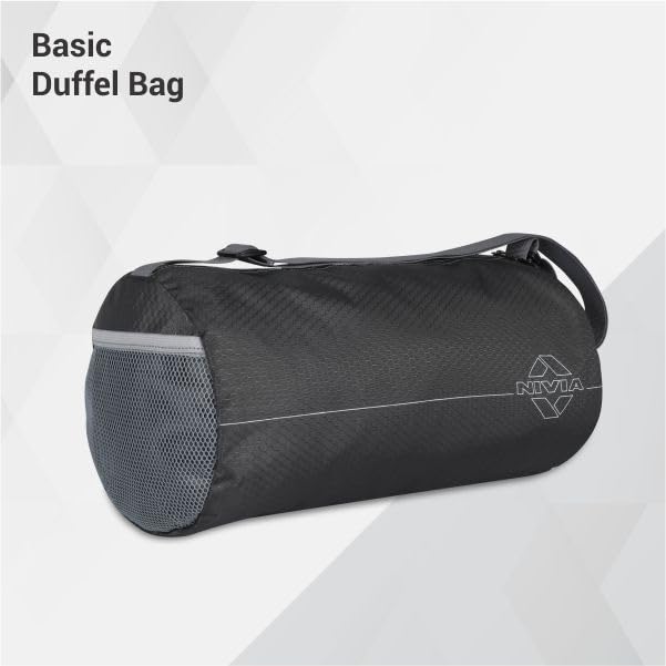 Nivia Basic Polyester Duffle Bag for Men & Women, Side Mesh Pocket, Workout & Training Bag, Suitable for Gym, Fitness, Sports & Travel with Adjustable Shoulder Strap (Black/Grey), Capacity-11L