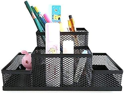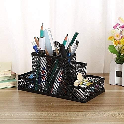 • · [Durable and stylish] : Desk space and keep your office essentials organized in the 4 divided compartments in this office supply caddy. Made from high-quality metal mesh, this pen stand is built to last while adding a modern touch to your workspace.
