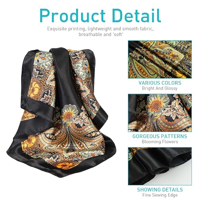 - PERFECT SIZE & EASY CARE: These 35×35-inch (90x90cm) satin scarves offer the ideal size for versatile styling. To maintain their vibrant colors and smooth texture, hand wash in cold water (below 30°C), lay flat to dry, and iron on low heat if necessary. Dry cleaning is also an option. With proper care, women scarf square womens head scarf will stay beautiful for years. Treat yourself or gift one today!