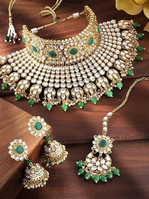 Peora Traditional Rani Padmavati Kundan Pearl Studded Bridal Choker with Earrings Maang Tikka Jewellery Gift Set for Women