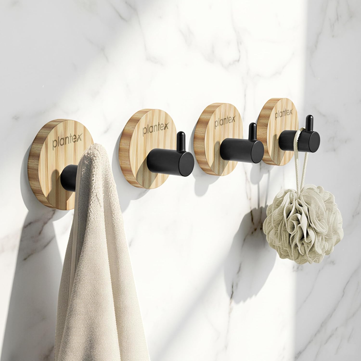Plantex Wooden Wall Hanging Hook/Round Self Adhesive Robe Hooks for Kitchen/Bathroom/Bath Towel Hook/Stylish Home Decor Items – Pack of 4 (Black Wooden)