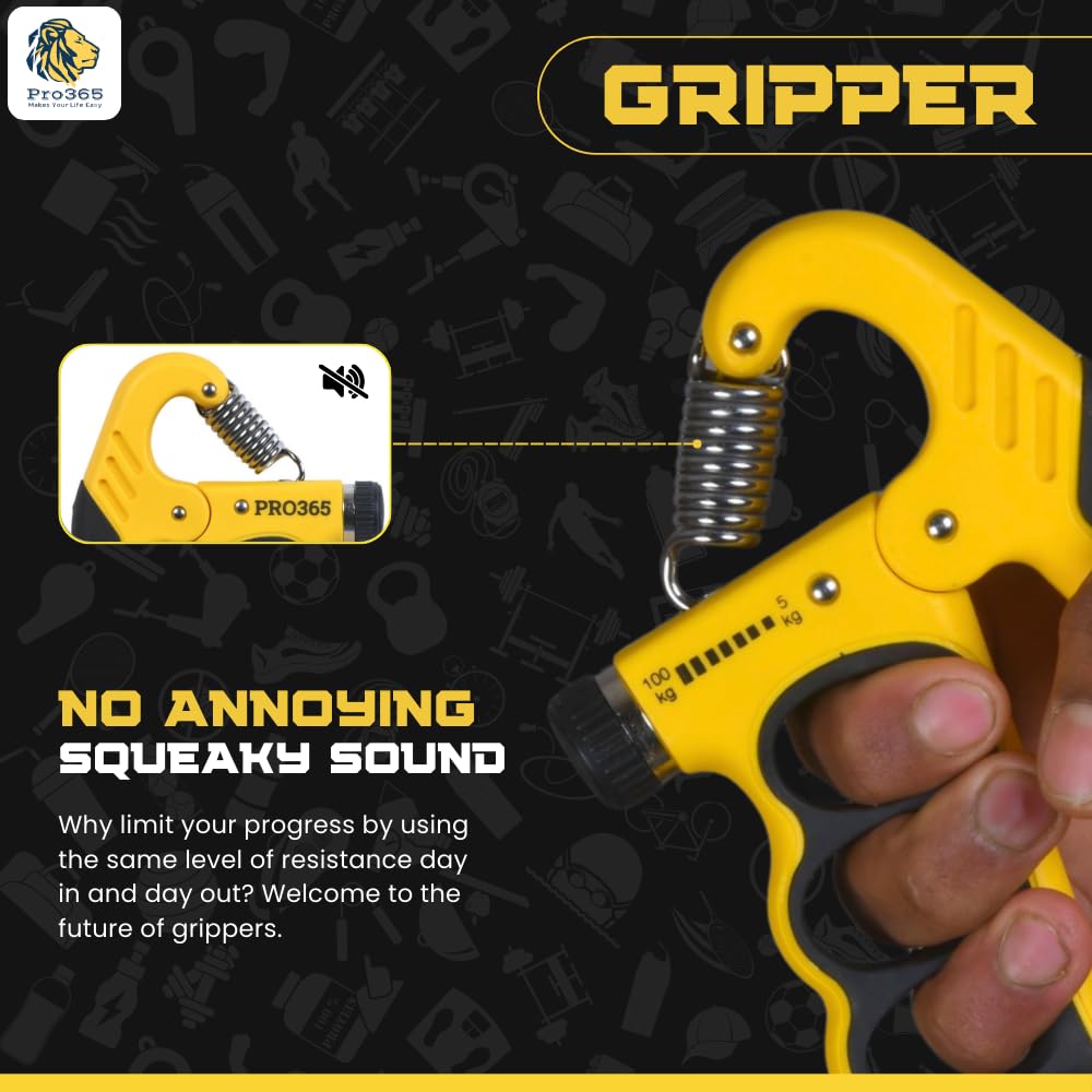 PRO365 Adjustable Hand Gripper with Counter (5–100Kg) | Forearm, Wrist & Finger Exerciser | Grip Strength Trainer for Muscle Building, Rehab, Endurance | 1 Year Warranty