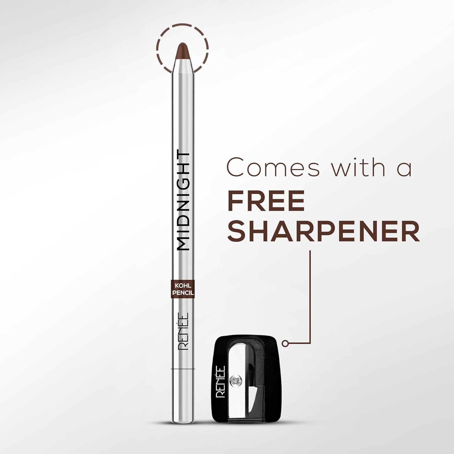 RENEE Midnight Kohl Kajal Pencil | Waterproof, Smudgeproof With Sharpener | 24 Hours Long Stay | Darkest Black | One Swipe Application | Vitamin E, Olive Oil and Castor Oil | Matte Finish |1.5 Gm